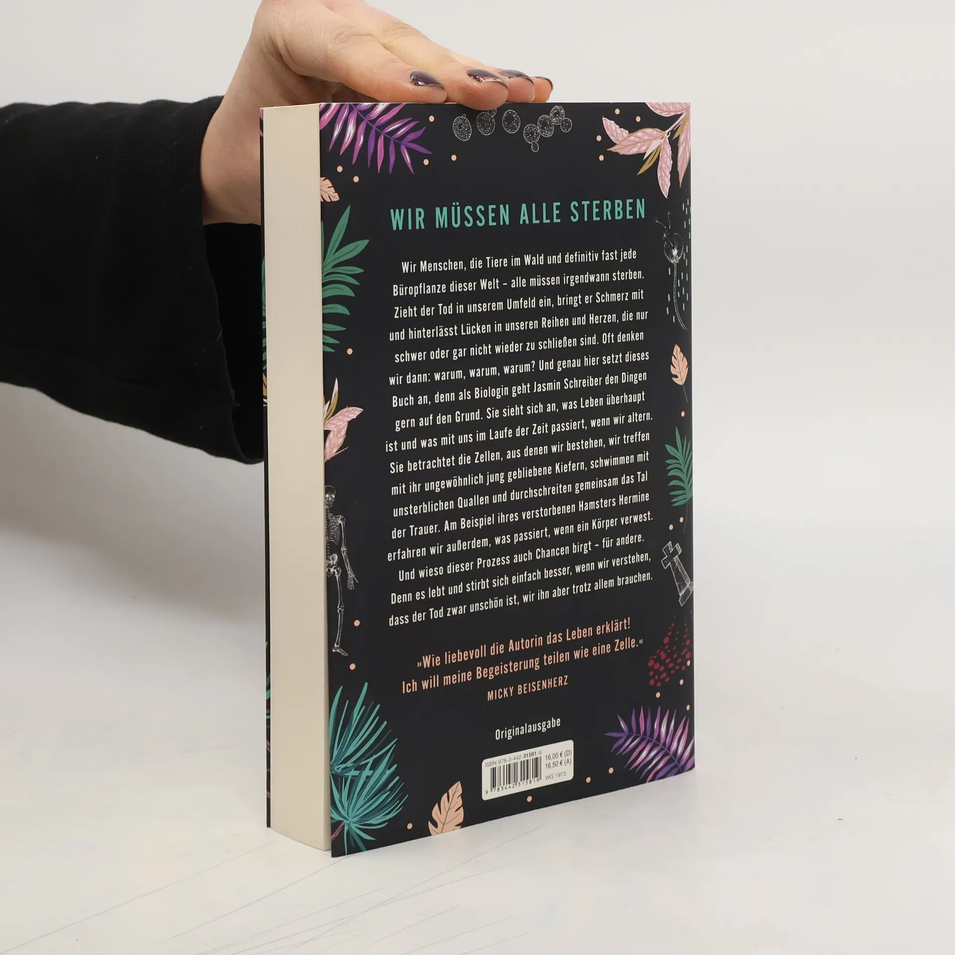 Wir Menschen, die Tiere im Wald und definitiv fast jede Büropflanze dieser Welt – alle müssen irgendwann sterben. Zieht der Tod in unserem Umfeld ein, bringt er Schmerz mit und hinterlässt Lücken in unseren Reihen und Herzen, die nur schwer oder gar nicht wieder zu schließen sind. Oft denken wir dann: warum, warum, warum? Und genau hier setzt dieses Buch an, denn als Biologin geht Jasmin Schreiber den Dingen gern auf den Grund. Sie sieht sich an, was Leben überhaupt ist und was mit uns im Laufe der Zeit passiert, wenn wir altern. Sie betrachtet die Zellen, aus denen wir bestehen, wir treffen mit ihr ungewöhnlich jung gebliebene Kiefern, schwimmen mit unsterblichen Quallen und durchschreiten gemeinsam das Tal der Trauer. Am Beispiel ihres verstorbenen Hamsters Hermine erfahren wir außerdem, was passiert, wenn ein Körper verwest. Und wieso dieser Prozess auch Chancen birgt – für andere. Denn es lebt und stirbt sich einfach besser, wenn wir verstehen, dass der Tod zwar unschön ist, wir ihn aber trotz allem brauchen. »Wie liebevoll die Autorin das Leben erklärt! Ich will meine Begeisterung teilen wie eine Zelle.« Micky Beisenherz
