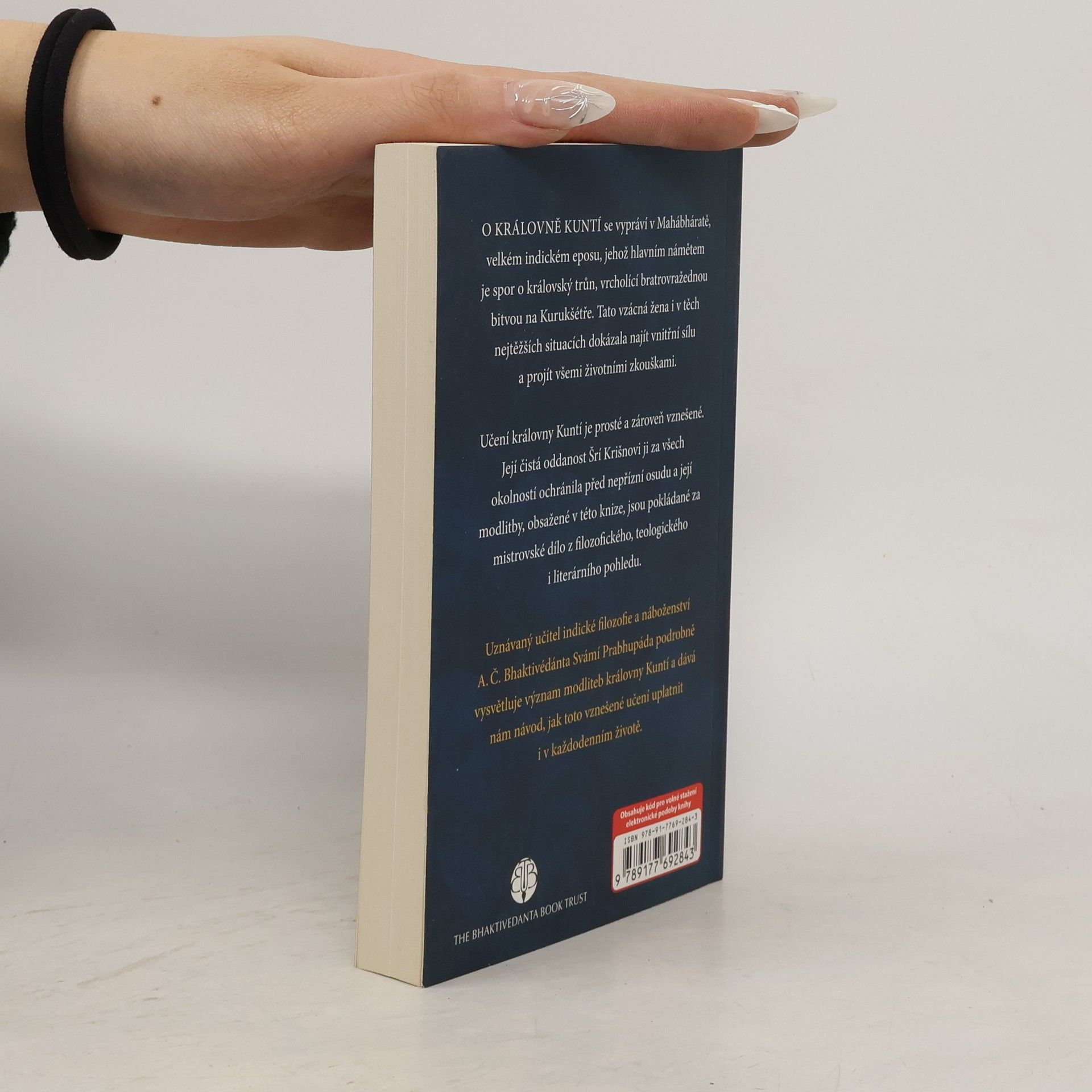 Učení královny Kuntí je prosté a zároveň vznešené. Její čistá oddanost Šrí Krišnovi ji za všech okolností ochránila před nepřízní osudu a její modlitby, obsažené v této knize, jsou pokládané za mistrovské dílo z filozofického, teologického i literárního pohledu. Uznávaný učitel indické filozofie a náboženství A. Č. Bhaktivédánta Svámí Prabhupáda podrobně vysvětluje význam modliteb královny Kuntí a dává nám návod, jak toto vznešené učení uplatnit i v každodenním životě.