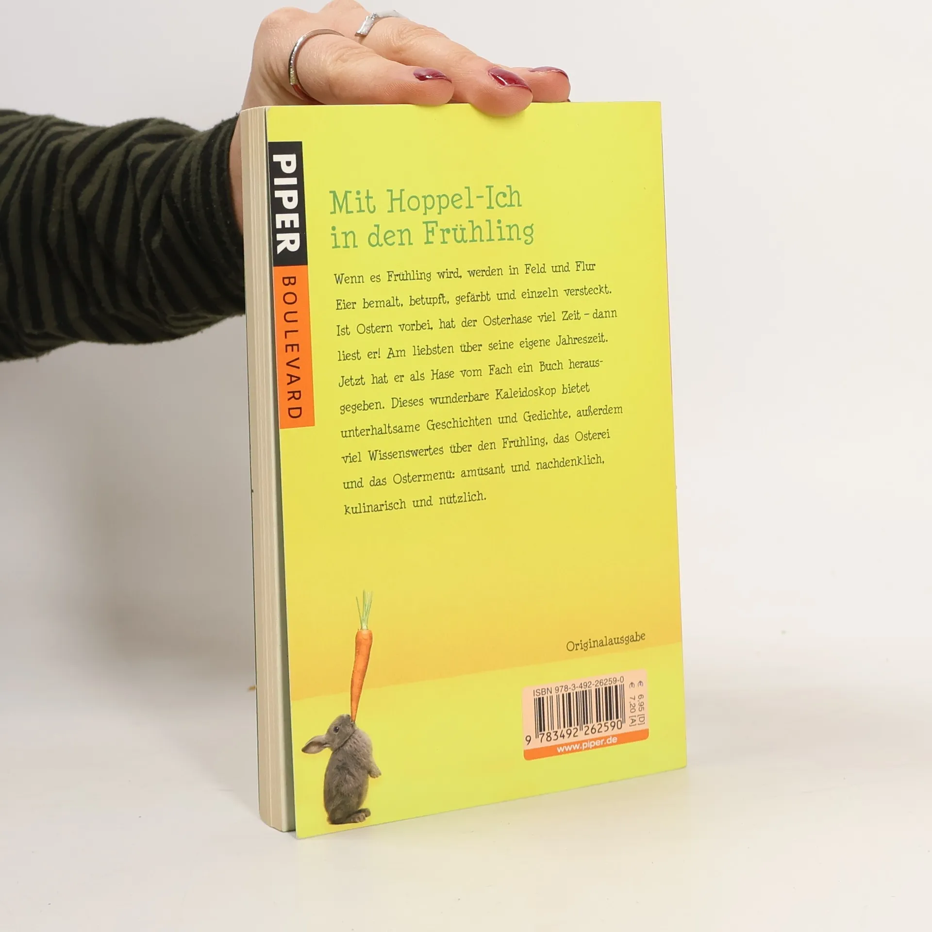 Wenn es Frühling wird, werden in Feld und Flur Eier bemalt, betupft, gefärbt und einzeln versteckt. Ist Ostern vorbei, hat der Osterhase viel Zeit – dann liest er! Am liebsten über seine eigene Jahreszeit. Jetzt hat er als Hase vom Fach ein Buch herausgegeben. Dieses wunderbare Kaleidoskop bietet unterhaltsame Geschichten und Gedichte, außerdem viel Wissenswertes über den Frühling, das Osterei und das Ostermenü: amüsant und nachdenklich, kulinarisch und nützlich.