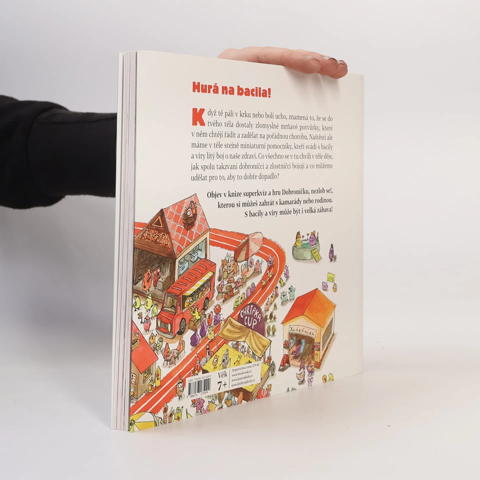 Když tě pálí v krku nebo bolí ucho, znamená to, že se do tvého těla dostaly zlomyslné mrňavé potvůrky, které tam chtějí řádit a zadělat na pořádnou chorobu. Naštěstí ale máme v těle stejně miniaturní pomocníky, kteří svádí s bacily a viry lítý boj o naše zdraví. Co všechno se v tu chvíli v těle děje, jak spolu takzvaní dobroníčci a zlostníčci bojují a co můžeme udělat pro to, aby to dobře dopadlo, se dozví děti ve vtipném a napínavém vyprávění známé české autorky knih pro děti. Určeno dětem od 7 let.