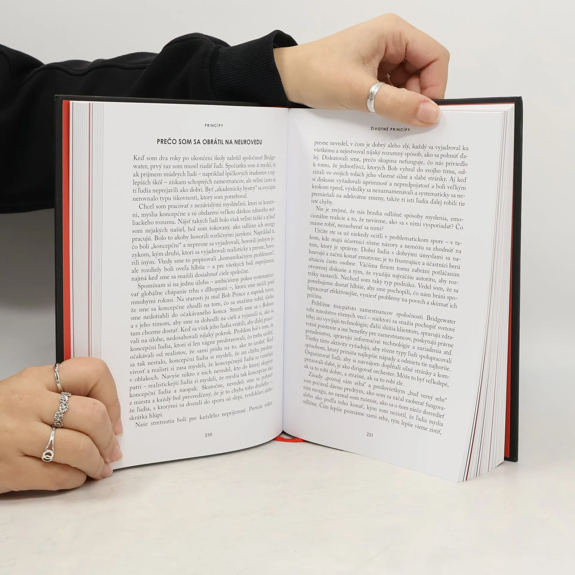 Ray Dalio, jeden najúspešnejších investorov a podnikateľov na svete, v tejto knihe spracoval svoje výnimočné životné a pracovné princípy, ktoré z obyčajného dieťaťa strednej vrstvy z Long Islandu urobili jedného z najúspešnejších ľudí našich čias. Princípy, ktoré môže použiť ktokoľvek, aby dosiahol svoje ciele. V roku 1975 Ray Dalio vo svojom jednoizbovom byte v New Yorku založil spoločnosť Bridgewater Associates. O štyridsať rokov neskôr je Bridgewater piatym najvýznamnejším súkromným podnikom v Spojených štátoch (Fortune), ktorý pre investorov zarobil viac peňazí než akýkoľvek iný hedžový fond v histórii (Bloomberg). Za toto obdobie odhalil Dalio celý rad unikátnych princípov, ktoré podľa neho stoja za jeho úspechom a o ktoré sa rozhodol podeliť v tejto knihe. Zatiaľ čo Princípy prekypujú novátorskými myšlienkami, ich jadro tvorí zrozumiteľný, priamy prístup k rozhodovaniu − vrátane Daliovho inovatívneho procesu „váženia vierohodnosti“ − ktorý môže uplatniť každý bez ohľadu na to, o čo sa snaží. Kniha ponúka aj generálny plán na vytvorenie „ideovej meritokracie, snahy o zmysluplnú prácu a zmysluplné vzťahy prostredníctvom radikálnej pravdy a radikálnej transparentnosti“, ktoré stoja za úspechom spoločnosti Bridgewater. Je to jedinečná príležitosť, ako dostať od „Steva Jobsa investovania“ (podľa časopisu CIO) overené rady, aké sa nedajú nájsť v tradičných publikáciách o podnikaní.