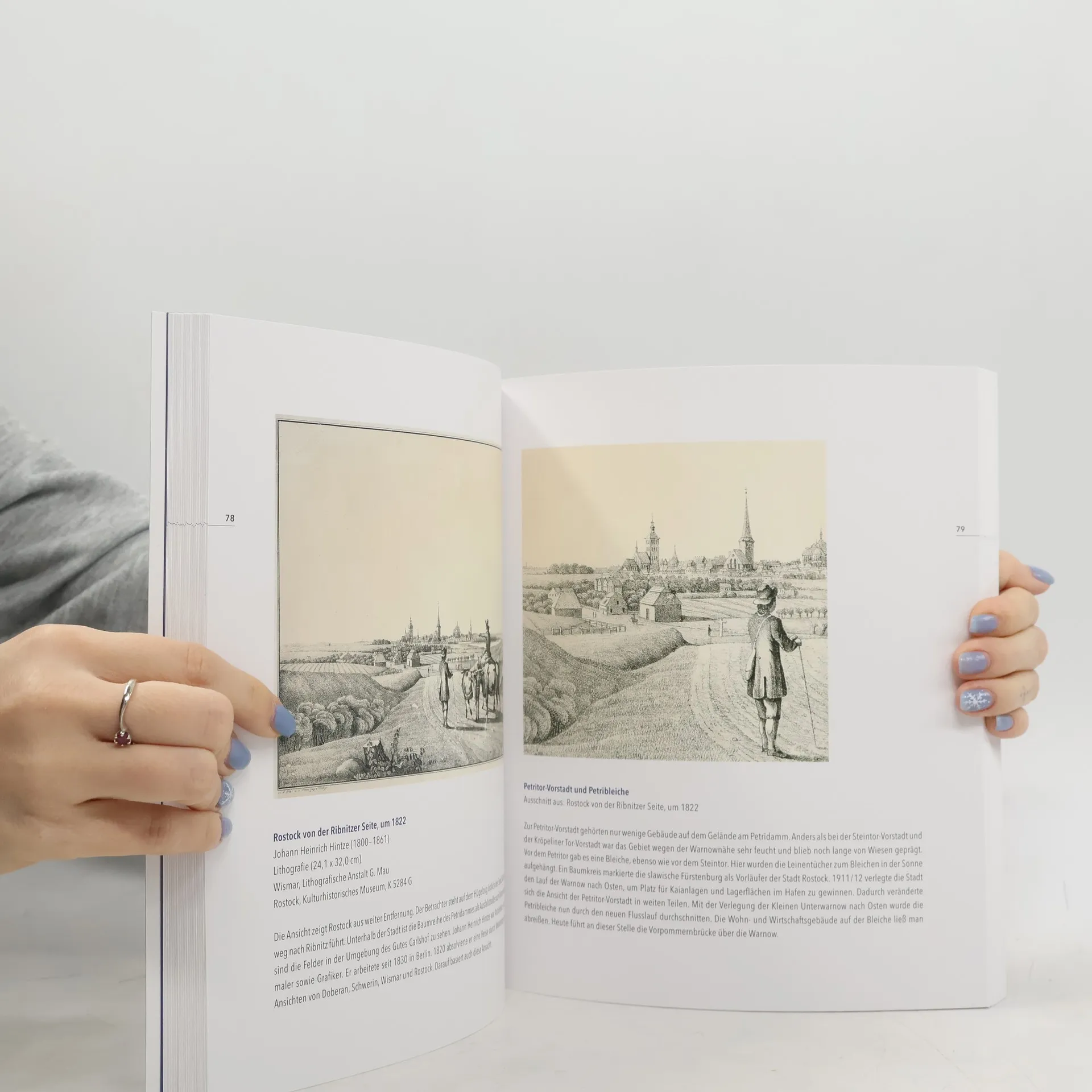 Noch heute beeindruckt das Panorama der Rostocker Innenstadt. Scheinbar unverrückt ragen die Kirchtürme über die Häuser, ist der Hafen prägendes Element der Stadtgestalt. Doch Rostock hat sich stetig gewandelt. Lange waren die Veränderungen nur minimal sichtbar. Drastisch und rasant wurden sie mit Beginn des letzten Jahrhunderts. Historische Darstellungen – oft beeindruckende Panoramen – machen den Wandel des Stadtbildes begreifbar. Gerade mit dem Blick auf die Details ist viel über das Werden Rostocks zu erfahren. Ausgewählt wurden wichtige gedruckte Rostock-Ansichten des 16. bis 19. Jahrhunderts. Drucke, Zeichnungen, Rekonstruktionen und seltene historische Fotografie werden nebeneinandergestellt und so als Quelle für die Stadtgeschichte erschlossen.