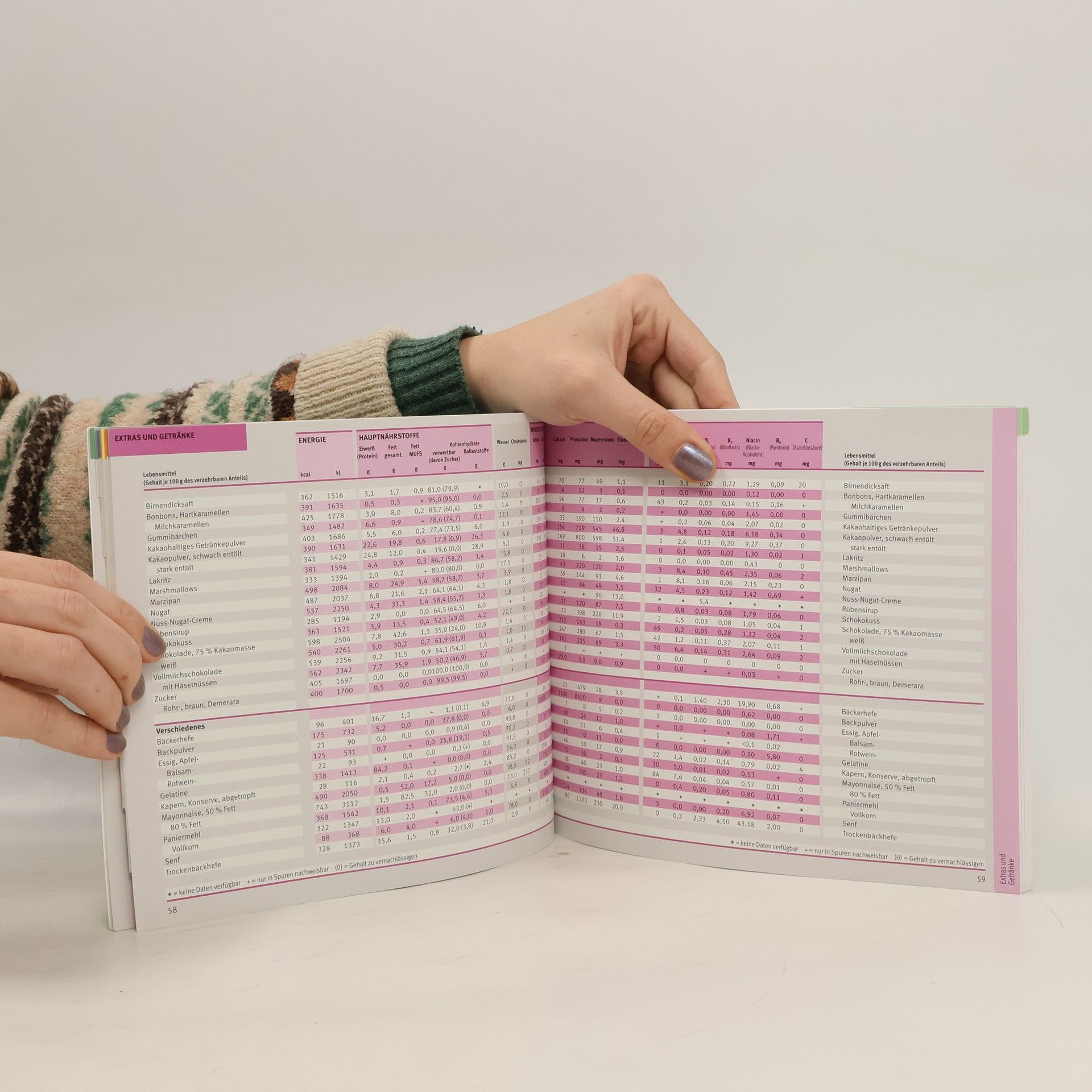 Die Nährwert-Kalorien-Tabelle ist seit Jahren der erfolgreichste und bei Ernährungsexperten anerkannte Klassiker. Über 20.000 Nährwertangaben bieten einen fundierten Überblick über die Nahrungsmittel, die wir täglich zu uns nehmen. Praktisch und benutzerfreundlich liefert die Tabelle wertvolle Informationen über alle wichtigen Inhaltsstoffe unserer Nahrung und berücksichtigt die aktuellen Referenzwerte der DGE (Deutsche Gesellschaft für Ernährung) zur Nährstoffzufuhr. Das nach Lebensmittelgruppen sortierte Griff-Register und die vielen Sondertabellen, z. B. für Diabetiker oder Allergiker, bieten eine sehr gute Übersicht über zahlreiche Produkte.