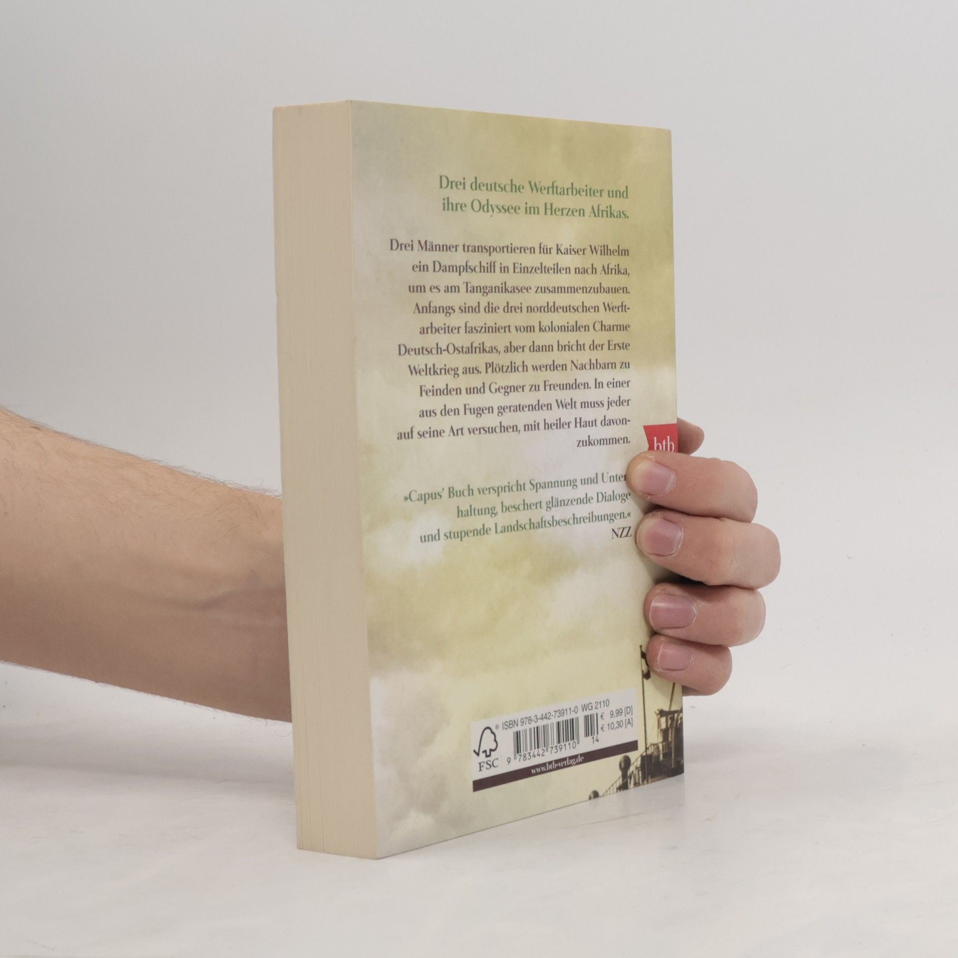Drei deutsche Werftarbeiter und ihre Odyssee im Herzen AfrikasDrei Männer transportieren für Kaiser Wilhelm ein Dampfschiff in Einzelteilen nach Afrika, um es am Tanganikasee zusammenzubauen. Zu Beginn der Odyssee sind die drei norddeutschen Werftarbeiter fasziniert vom kolonialen Charme Deutsch-Ostafrikas, aber dann bricht der Erste Weltkrieg aus. Plötzlich werden Nachbarn zu Feinden und Gegner zu Freunden. Keiner will, aber jeder muss Krieg führen vor der pittoresken Kulisse des tropischen Sees. Und jeder versucht, mit heiler Haut davonzukommen in einer aus den Fugen geratenden Welt.