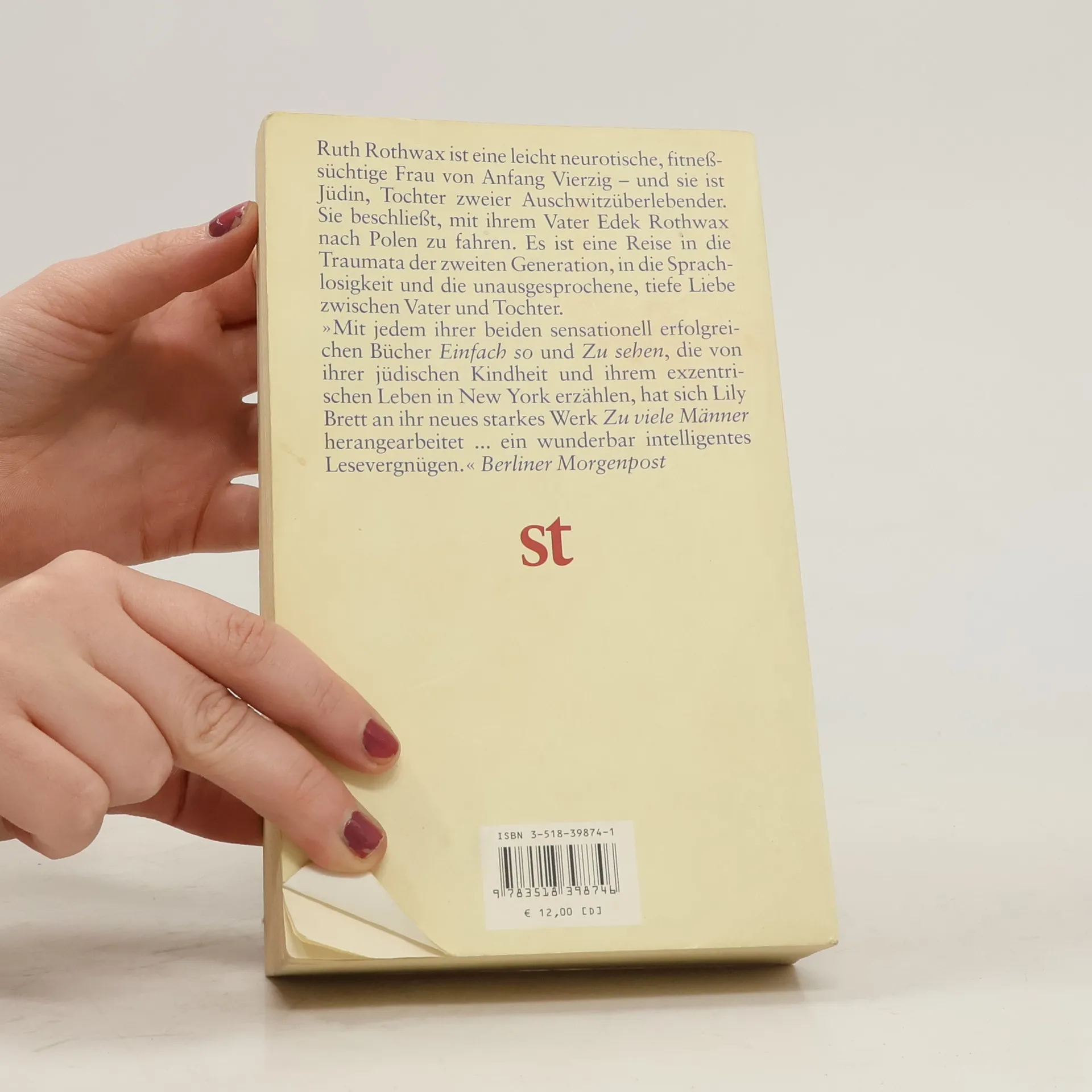 »Zu viele Männer« – das sind nicht Liebhaber und Verehrer, sondern zu viele schuldige und gleichgültige Menschen auf den Straßen Polens. Das sind jene Männer, die über Antisemitismus lachen oder begeisterten Touristen in Krakau antisemitische Figuren verkaufen – es sind all jene Männer, die Ruth Rowax verfolgen. Sie ist eine neurotische, fitnesssüchtige, selbständige, emanzipierte Frau von Anfang Vierzig und überzeugter Single. Sie verdient als Leiterin eines Korrespondenzbüros viel Geld. Typisch New York. Doch Ruth Rowax ist Jüdin, Tochter zweier Auschwitz-Überlebender, in Australien aufgewachsen und nach New York geflohen. Sie beschließt, mit ihrem verwitweten Vater Edek Rowax nach Polen zu fahren, auf Spurensuche zu gehen. Warschau, Lodz und Auschwitz sollen die Stationen sein. Es ist eine Reise in die Traumata der zweiten Generation, in die Sprachlosigkeit und die unausgesprochene, tiefe Liebe zwischen Vater und Tochter.