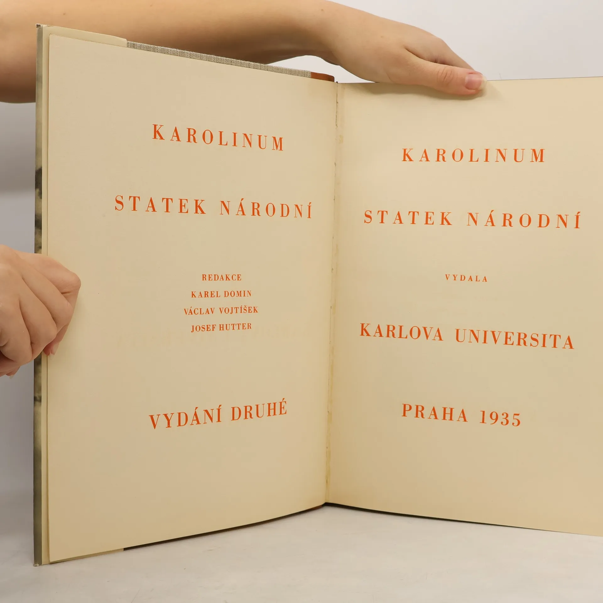 Důstojná kniha o památném a starobylém Karolinu, srdci naší staroslavné Almae matris. Tato kniha o Karolinu měla svým výtěžkem posílit také národní sbírku pro jeho obnovu. Především však měla ukázat veřejnosti, co znamenalo v našich dějinách Karolinum jako kolébka naší kultury a ohnisko vlasteneckých snah pro povznesení národa pravou vzdělaností.