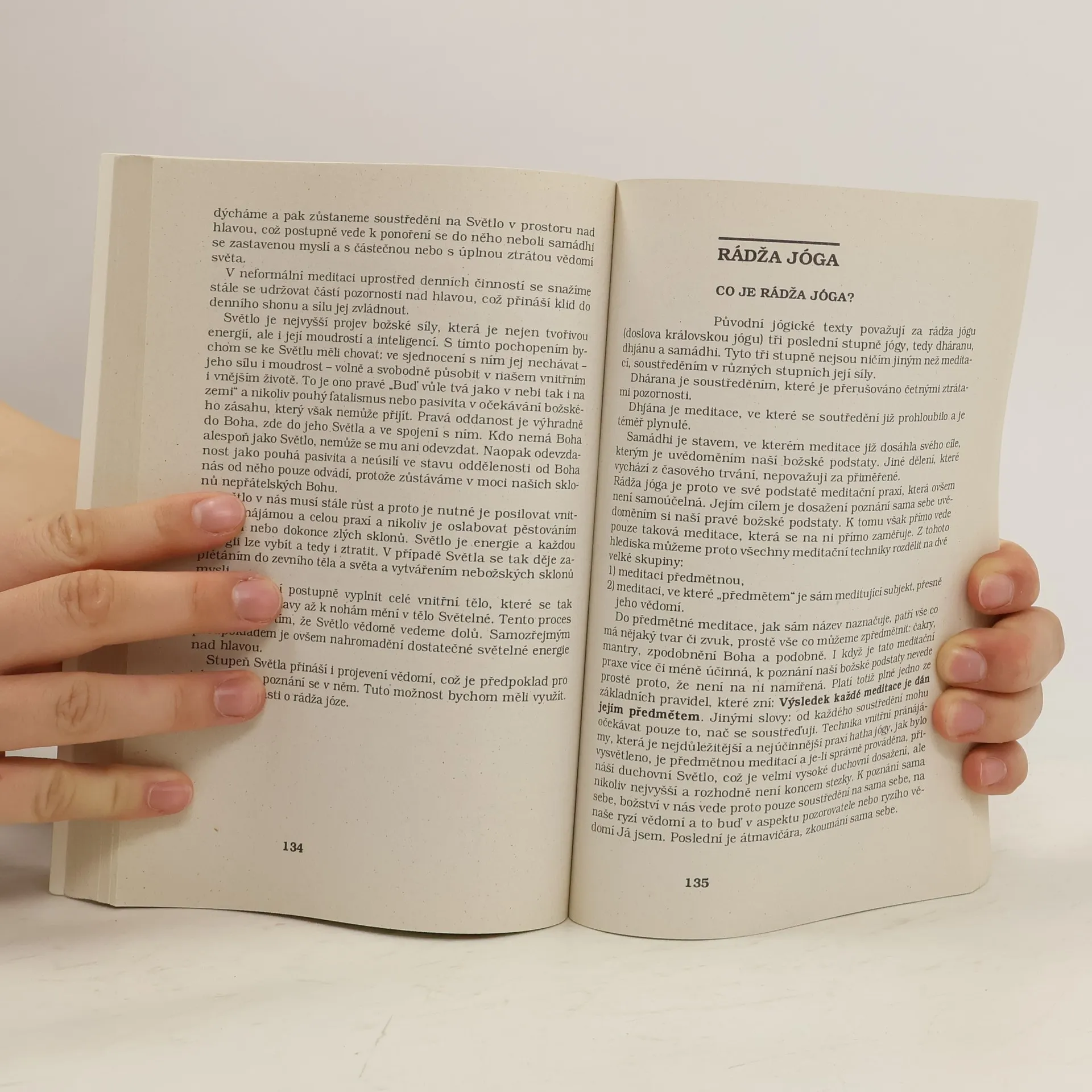 Autor vysvětluje podstatu jógy, její zákonitosti a cíle, které jsou duchovní a nikoliv pouhé tělesné a duševní zdraví. Vychází z původního pojetí hatha jógy jako přípravy na rádža jógu a podává praktický návod k její praxi, která směřuje k tomu, k čemu je určena: ke znovusjednocení životní síly a k její přeměně v duchovní světlo nad hlavou a k následnému dosažení samádhi. Tato praxe nevyžaduje nezbytné cvičení ásan, které jsou pro běžného Evropana obtížně zvládnutelné. Druhá část knihy pojednává o meditační praxi rádža jógy, která pomocí soustředění na pozorující vědomí v nás vede metodicky a vzestupně uspořádaných meditacích k poznání átman, naší pravé podstaty a k trvalému samádhi při plné účasti ve světě. Uvedená praxe nevyžaduje zvláštní způsob života, je plně slučitelná se životem ve světě a mohou ji provádět všichni, kteří touží se duchovně rozvíjet a poznat samy sebe.