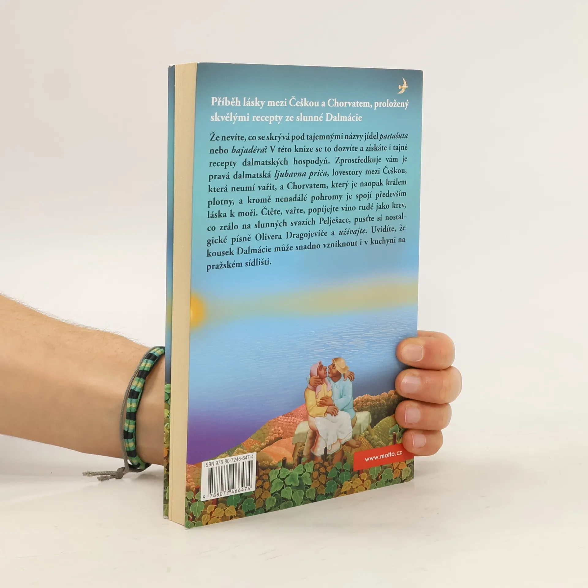 Že nevíte, co se skrývá pod tajemnými názvy jídel pastašuta nebo bajadéra? V této knize se to dozvíte a získáte i tajné recepty dalmatských hospodyň. Zprostředkuje vám je pravá dalmatská ljubavna priča, lovestory mezi Češkou, která neumí vařit, a Chorvatem, který je naopak králem plotny, a kromě nenadálé pohromy je spojí především láska k moři. Čtěte, vařte, popíjejte víno rudé jako krev, co zrálo na slunných svazích Pelješace, pusťte si nostalgické písně Olivera Dragojeviče a uživajte.