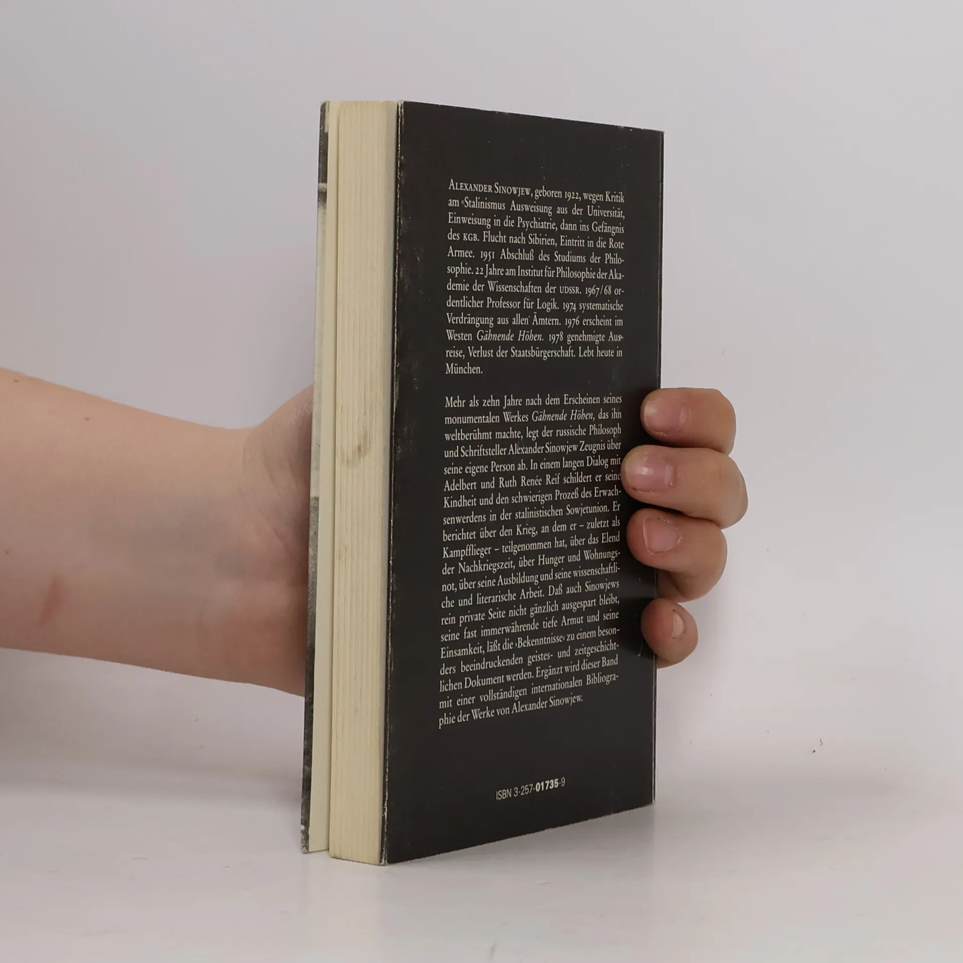 Mehr als zehn Jahre nach dem Erscheinen seines monumentalen Werkes 'Gähnende Höhen', das ihn weltberühmt machte, legt der russische Philosoph und Schriftsteller Alexander Sinowjew Zeugnis über seine eigene Person ab. Er schildert den schwierigen Prozeß des Erwachsenwerdens in der stalinistischen Sowjetunion, den Krieg, das Elend der Nachkriegszeit und seine wissenschaftliche und literarische Arbeit.