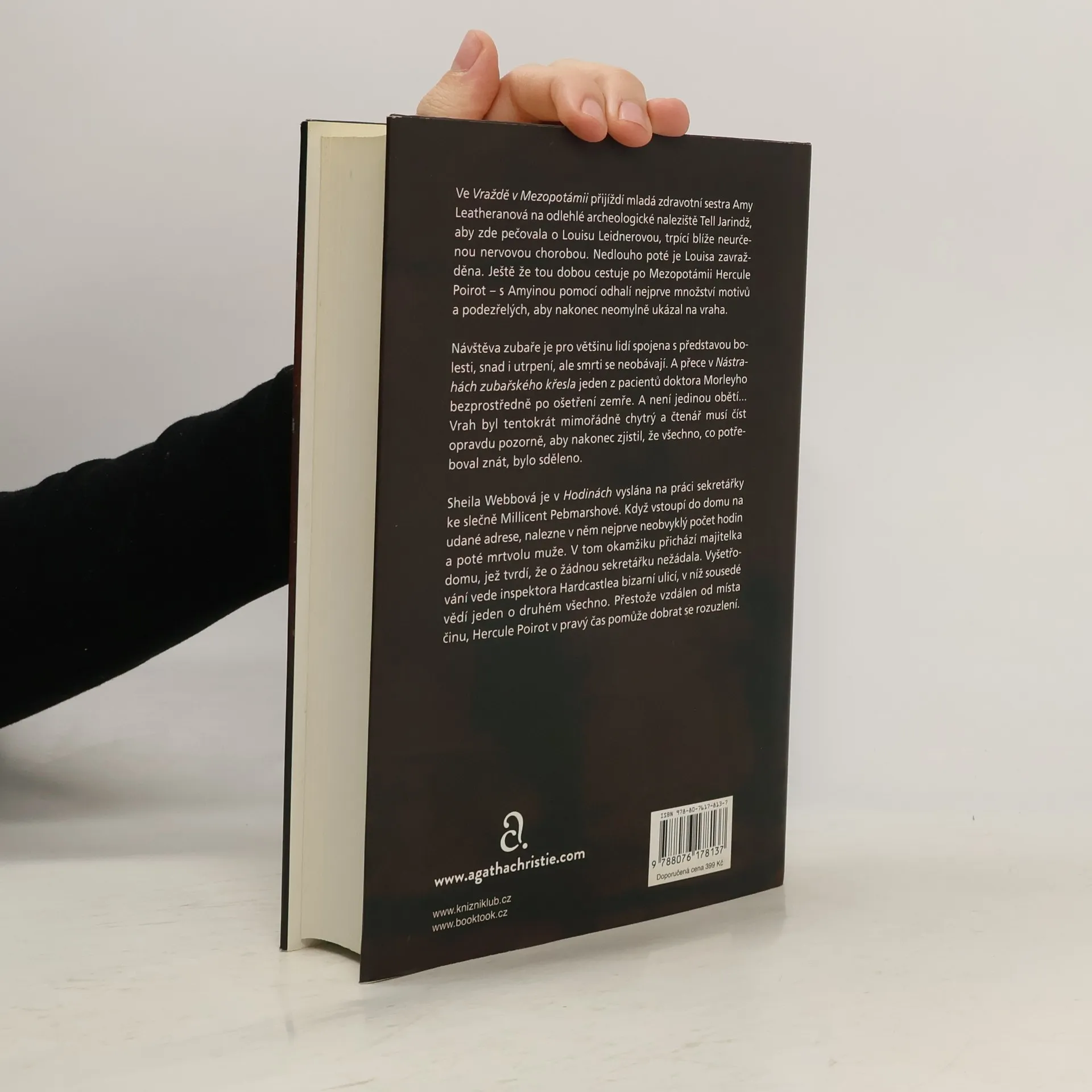 Vrah řádící mezi archeology, v zubařské ordinaci či u nevidomé dámy – trojice případů opět prověří malé šedé buňky slavného belgického detektiva Hercula Poirota. Ve Vraždě v Mezopotámii (1936) se octne na odlehlém nalezišti, kde zabitím manželky vedoucího výpravy vyvrcholí nevysvětlitelná nervózní atmosféra. Nástrahy zubařského křesla (1940) před něj postaví případ zmizelé dámy a tajného agenta a nachystají mu lstivou léčku. A hodin se v Hodinách (1963) najde v místnosti společně s mrtvolou neznámého muže nepočítaně – ačkoli majitelka domu tvrdí, že vlastní jen jedny jediné, vysoké stojací pendlovky...