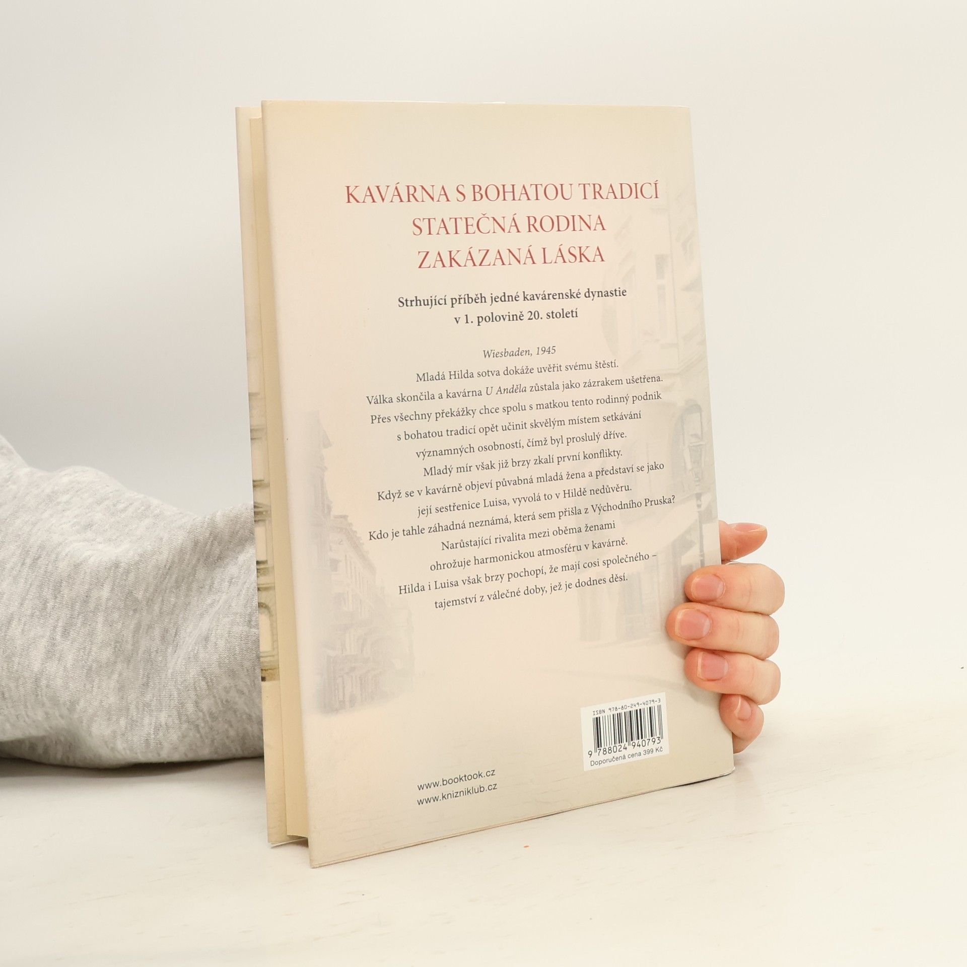 Strhující příběh jedné kavárenské dynastie na přelomu 20. století Wiesbaden, 1945 Mladá Hilda sotva dokáže uvěřit svému štěstí. Válka skončila a kavárna U Anděla zůstala jako zázrakem ušetřena. Přes všechny překážky chce tento rodinný podnik s bohatou tradicí opět učinit skvělým místem setkávání významných osobností, čímž byl proslulý dříve. Mladý mír však již brzy zkalí první konflikty. Když přijde do kavárny půvabná mladá žena a představí se jako její sestřenice Luisa, vyvolá to v Hildě nedůvěru. Kdo je tahle záhadná Luisa, která se z Východního Pruska dostala až do Wiesbadenu? Narůstající rivalita mezi oběma ženami ohrožuje harmonickou atmosféru v kavárně. Dokud Hilda i Luisa nakonec nepochopí, že mají cosi společného – tajemství z válečné doby, jež je dodnes děsí.