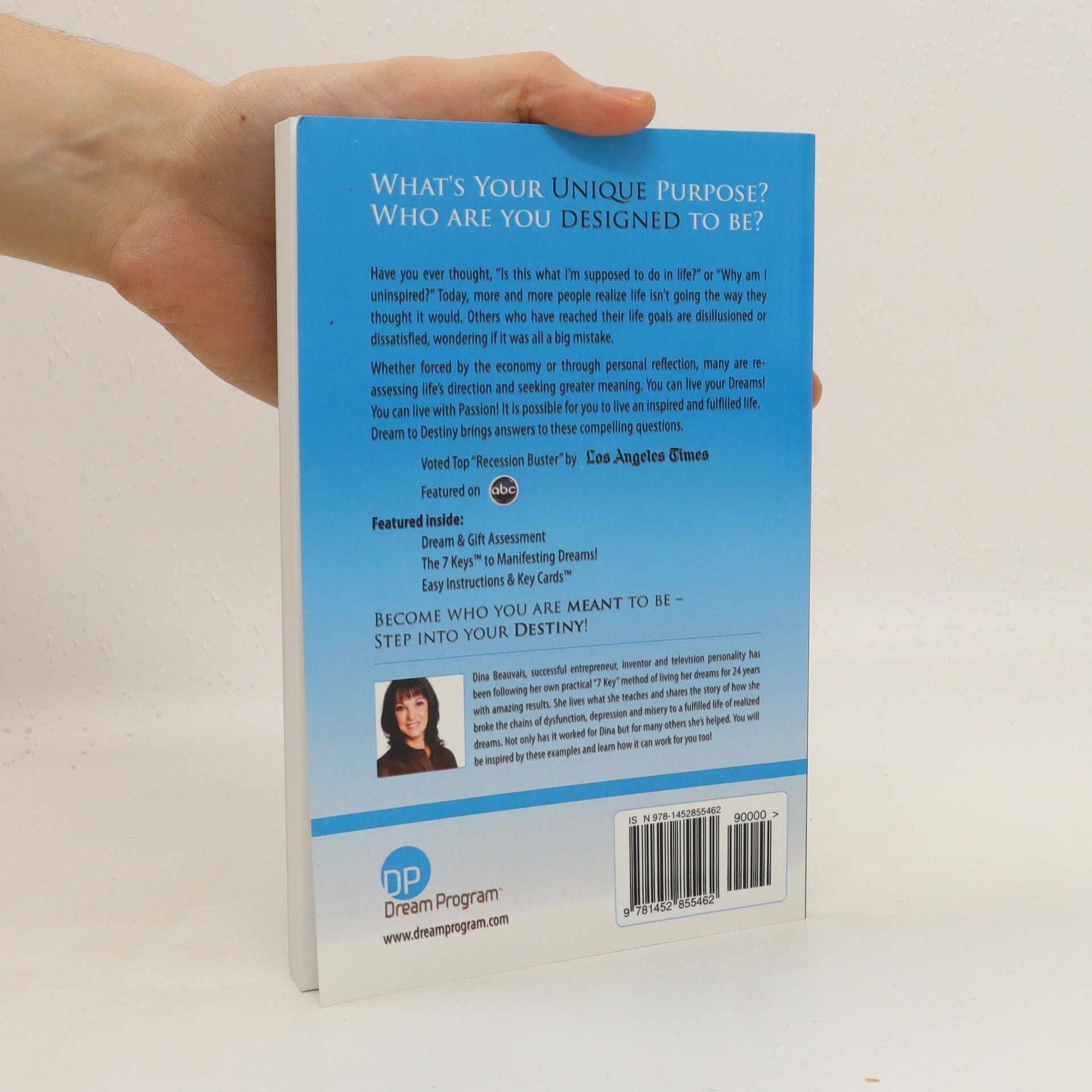 Voted TOP "Recession Buster" by the LA Times! Featured on ABC, LifeTime, in The New York Times & many more! Author, Dina Beauvais, has been living by her method of achieving dreams and goals since 1986! She has helped many others around the globe to manifest their dreams as well. Don't just take what life hands you. Create new realities based on your God-given gifts, talents, passions and dreams. This revolutionary book teaches you How To manifest your dreams when you follow "The 7 Keys". The royalties from this book go to the Dream Program, a nonprofit, helping many live their dreams. Sherrie Clayton, from their National TV show is now living by and loving this book and program.