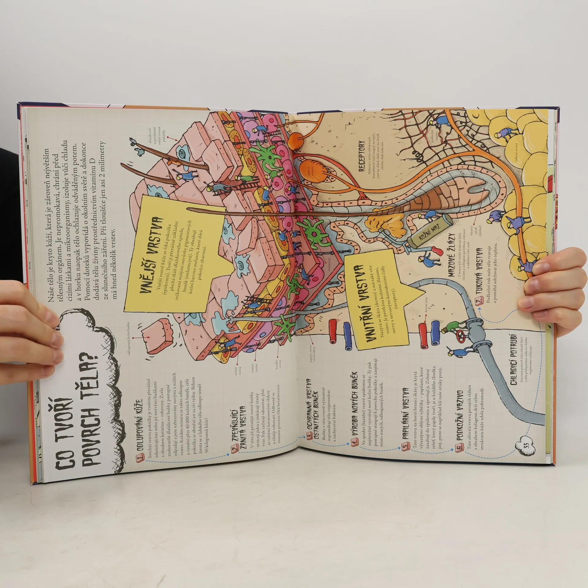 Jak se hojí kosti? Kudy proudí krev? Co se děje s tím, co sníme? Co drží tělo pohromadě? Jak se tělo vypořádává s nežádoucími vetřelci? Proč se podobáme rodičům? Vydejte se s námi na vzrušující jízdu do útrob lidského těla. Prohlédněte si všechno pěkně zblízka - od nejmenší buňky až po velkou okružní cestu oběhovým systémem. Stojí to za to! Tato knížka vám ukáže, jak složitým a zajímavým organismem tělo je a jaké úžasné procesy v něm probíhají. Mnohé věci, které se vám dosud zdály být běžné a samozřejmé, teď uvidíte jinak.