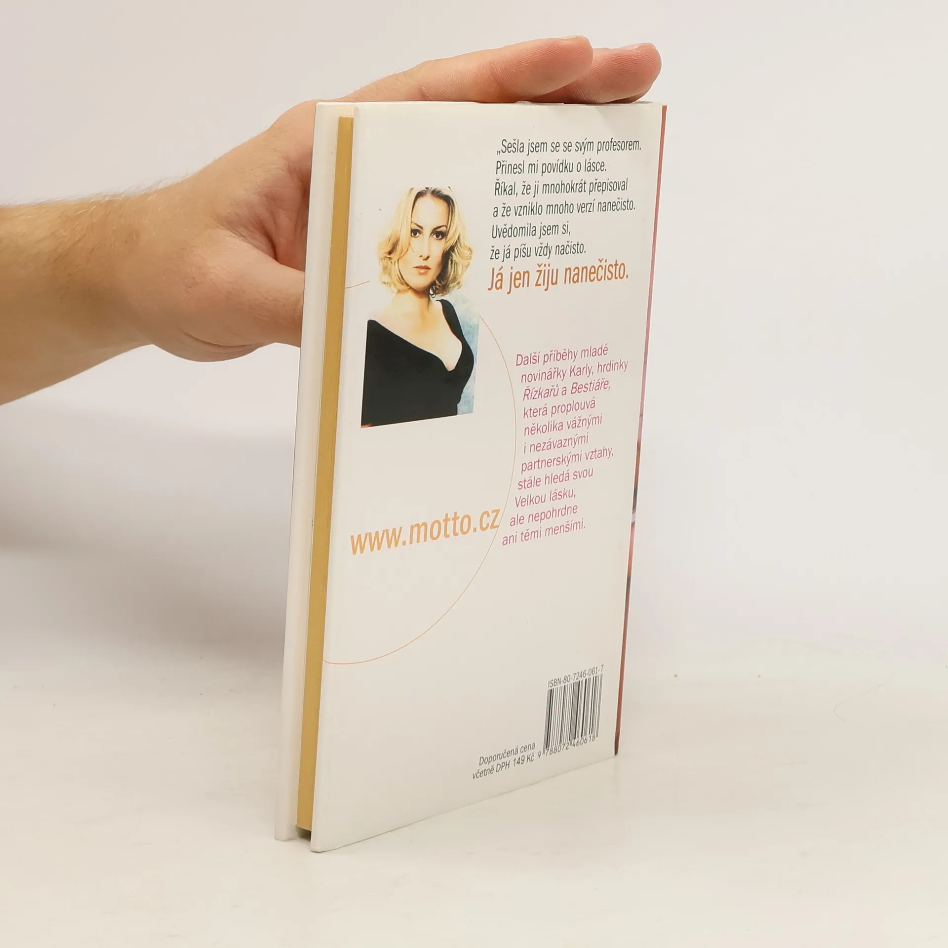 Další příběh mladé novinářky Karly, hrdinky Řízkařů a Bestiáře, která proplouvá několika vážnými i nezávaznými partnerskými vztahy, stále hledá svou Velkou lásku, ale nepohrdne ani těmi menšími. "Sešla jsem se svým profesorem. Přinesl mi povídku o lásce. Říkal, že ji mnohokrát přepisoval a že vzniklo mnoho verzí nanečisto. Uvědomila jsem si, že já píšu vždy načisto. JÁ JEN ŽIJU NANEČISTO."... celý text