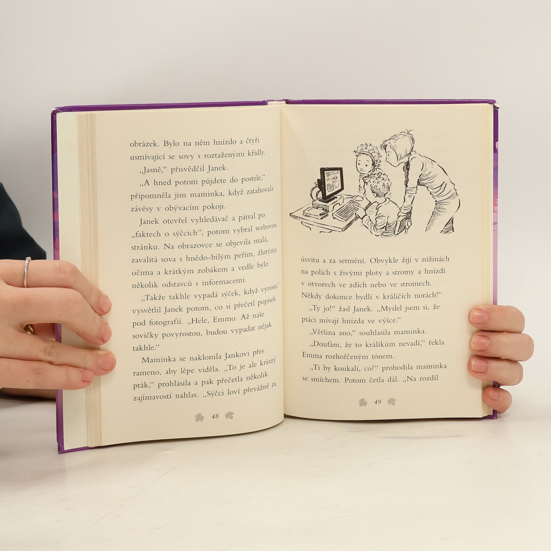 Příběh se šťastným koncem, který se skutečně stal! Při bourání staré stodoly přišly o střechu nad hlavou čtyři malé sovičky. Když je Janek najde, jsou hladové a prochladlé. Po jejich rodičích není ani vidu, ani slechu. Chlapcova maminka proto zavolá do záchranné stanice, kde jim poradí, jak se o ně mají postarat, než si pro ně přijedou. Ptáčátka jsou z nejhoršího venku, ale podaří se pro ně najít náhradní rodinu? Nebude to snadné. Janek se ale rozhodne, že záchranářům v hledání pomůže… Krásný příběh o lidech s dobrým srdcem, kteří pomáhají zachraňovat zvířátka.