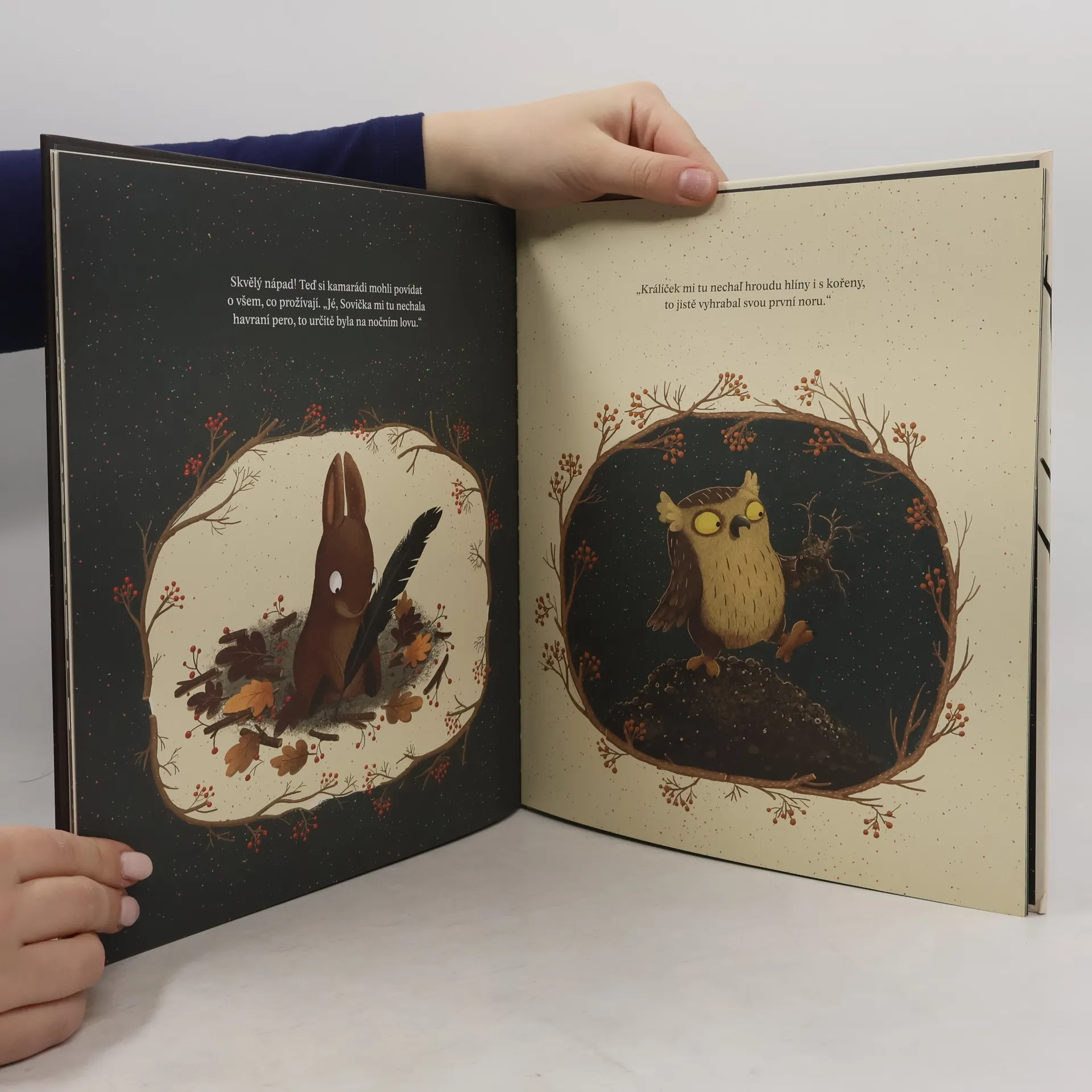 Příběh neobyčejného přátelství králíčka a sovičky s půvabnými ilustracemi od autorky Roku v lese. U kořenů starého dubu bydlí králičí rodinka a vysoko v koruně nad nimi hnízdí sovy. V obou rodinách se právě narodilo mláďátko. Ačkoli žijí tak blízko sebe, málokdy se potkají. Když je krásný, slunečný den a Králíček běhá po louce, Sovička tvrdě spí. A jakmile Sovička v odlesku měsíce roztáhne křídla, Králíček sladce usíná. Tak ubíhají dny i noci a Králíček se Sovičkou se nikdy nepotkají. Jenže rodiče jim o tom druhém tolik vyprávějí, až se oba zatouží poznat… Pro děti od tří let. ---- Nádherný příběh plný něhy doplňují krásné ilustrace Emilie Dziubakové. - Blog Knížky od mámy o knize Obejmi mě, prosím Kandidát na nejmilejší zvířátkovou knížku ever. - Ninnulina mama blog o knize Obejmi mě, prosím