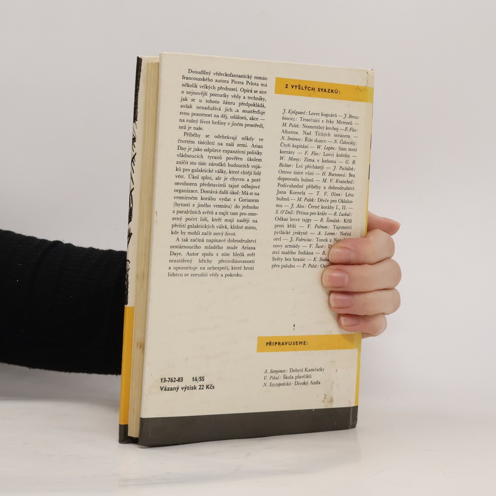 Dvoudílný vědeckofantastický román francouzského autora Pierra Pelota má několik velkých předností. Opírá se sice o nejnovější poznatky vědy a techniky, jak se u tohoto žánru předpokládá, avšak nenadužívá jich a soustřeďuje svou pozornost na děj, události, akce — na rušný život hrdiny v jiném prostředí, než je naše. Příběhy se odehrávají někdy ve čtvrtém tisíciletí na naší zemi. Arian Day je jako odpůrce expanzivní politiky vládnoucích tyranů pověřen úkolem zničit sto tisíc zárodků budoucích vojáků pro galaktické války, které chtějí lidé vést. Úkol splní, ale je chycen a poté osvobozen představiteli tajné odbojové organizace. Dostává další úkol: Má se na vesmírném korábu vydat s Corianem (bytostí z jiného vesmíru) do jednoho z paralelních světů a najít tam pro omezený počet lidí, kteří mají naději na přežití galaktických válek, klidné místo, kde by mohli začít nový život. A tak začíná napínavé dobrodružství nestárnoucího mladého muže Ariana Daye. Autor spolu s ním hledá svět nezatížený hříchy přecivilizovanosti a upozorňuje na nebezpečí, které hrozí lidstvu ze zneužití vědy a pokroku.