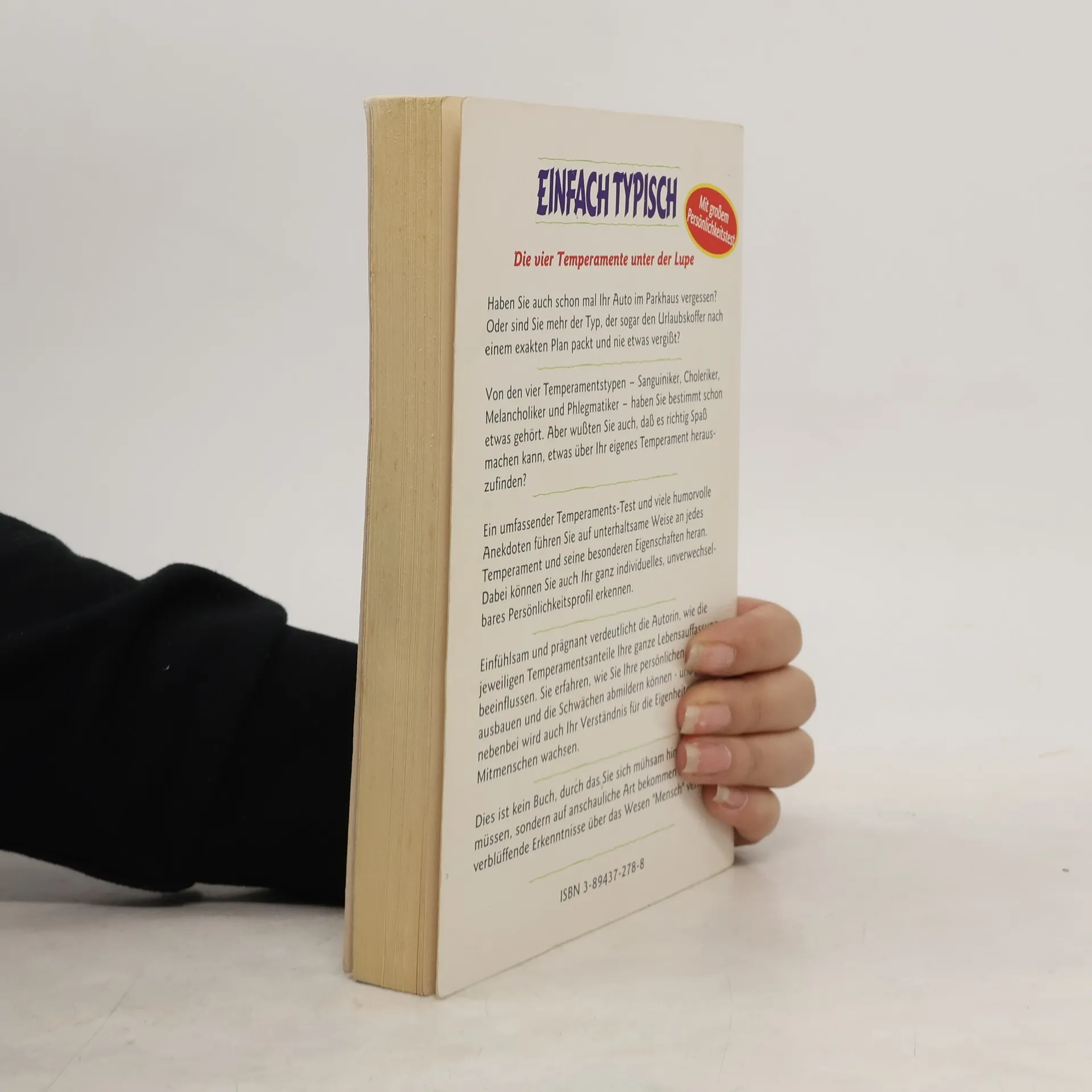 Haben Sie auch schon mal Ihr Auto im Parkhaus vergessen? Oder sind Sie mehr der Typ, der sogar den Urlaubskoffer nach einem exakten Plan packt und nie etwas vergisst? Von den vier Temperamentstypen - Sanguiniker, Choleriker, Melancholiker und Phlegmatiker - haben Sie bestimmt schon etwas gehört. Aber wussten Sie auch, dass es richtig Spaß machen kann, etwas über Ihr eigenes Temperament herauszufinden? Ein umfassender Temperaments-Test und viele humorvolle Anekdoten führen Sie auf unterhaltsame Weise an jedes Temperament und seine besonderen Eigenschaften heran. Dabei können Sie auch Ihr ganz individuelles, unverwechselbares Persönlichkeitsprofil erkennen. Einfühlsam und prägnant verdeutlicht die Autorin, wie die jeweiligen Temperamentsanteile Ihre ganze Lebensauffassung beeinflussen. Sie erfahren, wie Sie Ihre persönlichen Stärken ausbauen und die Schwächen abmildern können - und ganz nebenbei wird auch Ihr Verständnis für die Eigenheiten Ihrer Mitmenschen wachsen. Dies ist kein Buch, durch das Sie sich mühsam hindurcharbeiten müssen, sondern auf anschauliche Art und Weise bekommen Sie ganz verblüffende Erkenntnisse über das Wesen „Mensch“ vermittelt.