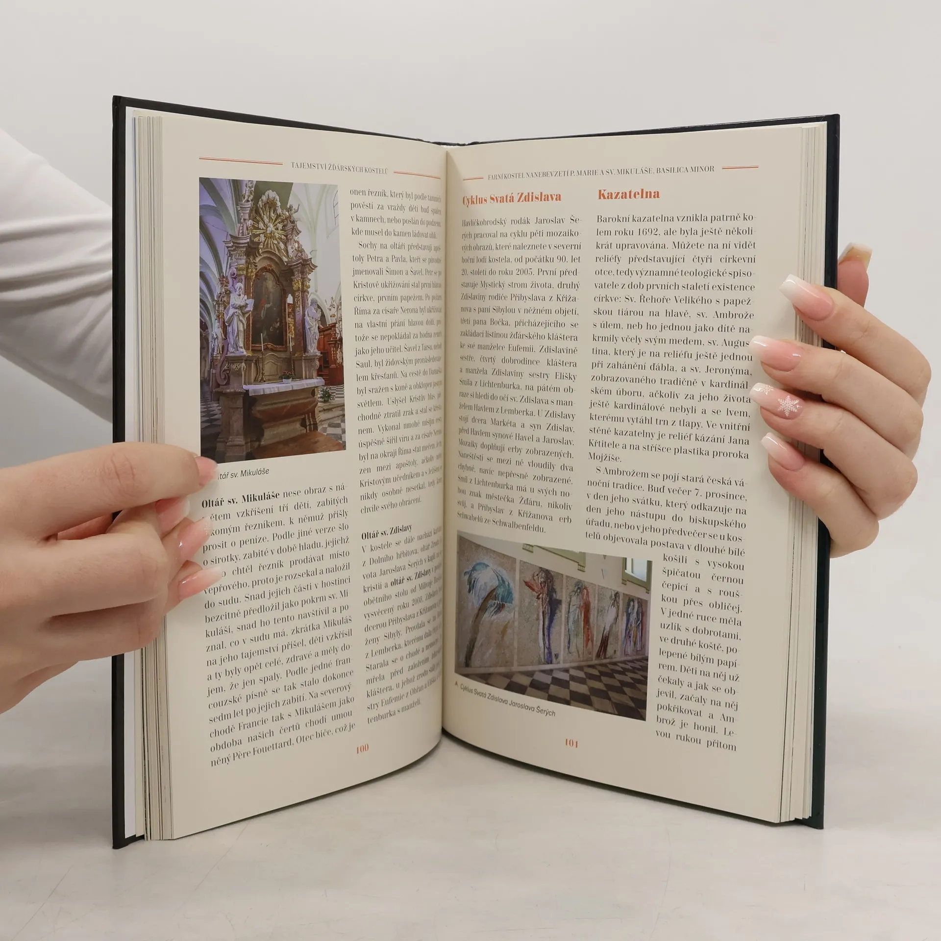 Kniha fotografa Milana Šustra a historika Stanislava Mikuleho není obvyklou publikací o žďárských sakrálních památkách a jejich historii. Zaměřuje se spíš na to, co je v těchto stavbách zajímavého, co by jejich návštěvníci neměli přehlédnout a co naopak jen tak nespatří, neb je to zrakům běžných smrtelníků z různých důvodů skryto. Obyvatelé města se dozvědí, co by měli o těchto stavbách rozhodně vědět, mimožďárským pak přiblíží jejich jedinečnost v mnohdy netušených souvislostech. Autoři upřímně doufají, že čtivý text a poetické snímky obě skupiny čtenářů přimějí k osobní návštěvě těchto krásných pamětihodností.