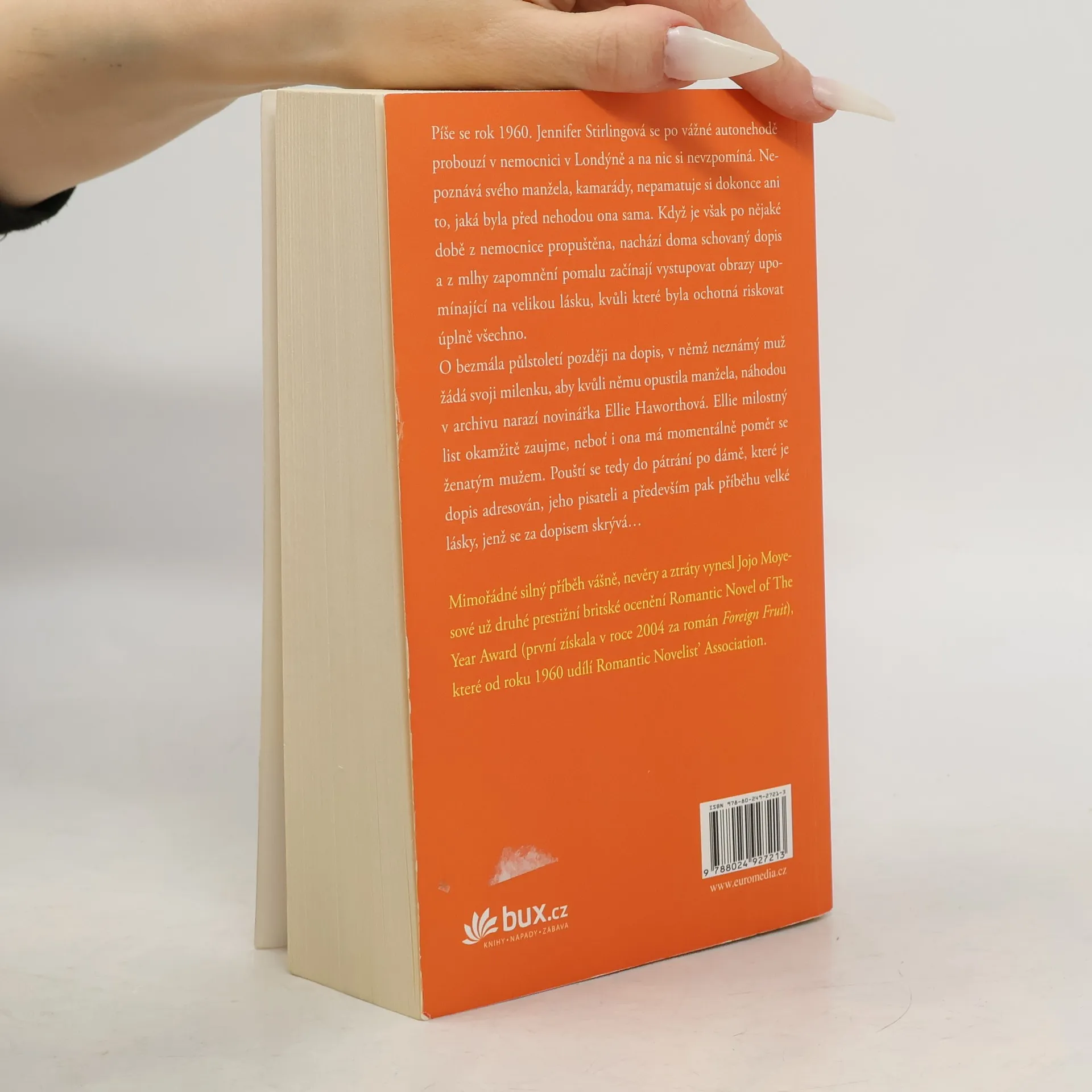 Mimořádně silný příběh vášně, nevěry a ztráty z pera respektované britské autorky Jojo Moyesové, který získal v roce 2011 prestižní ocenění The Romantic Novel of the Year Award. Novinářka Ellie při pátrání v archivu narazí na půlstoletí starý dopis, v němž neznámý muž žádá svoji milenku, aby opustila manžela. Ellie příběh, skrývající se za dopisem, okamžitě zaujme – i ona sama má poměr se ženatým mužem. Rok 1960. Jennifer Stirlingová leží v nemocnici po vážné autonehodě a na nic si nepamatuje – na manžela, na své kamarády, ani na to, jaká byla ona sama. Když se však vrátí z nemocnice domů a najde tajný dopis, pomalu se začíná rozpomínat na milence, kvůli kterému byla kdysi ochotná riskovat úplně všechno.