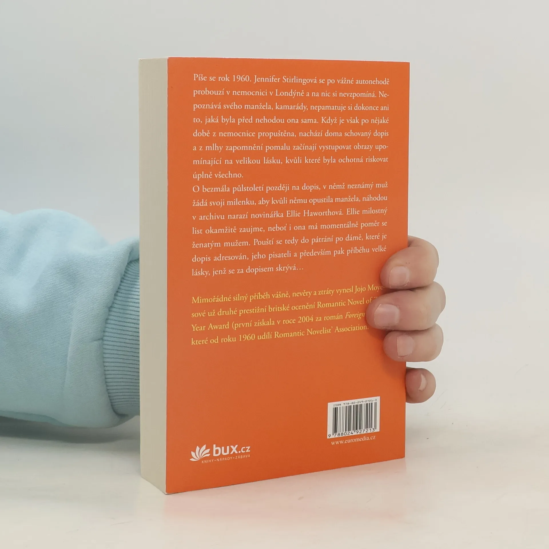 Mimořádně silný příběh vášně, nevěry a ztráty z pera respektované britské autorky Jojo Moyesové, který získal v roce 2011 prestižní ocenění The Romantic Novel of the Year Award. Novinářka Ellie při pátrání v archivu narazí na půlstoletí starý dopis, v němž neznámý muž žádá svoji milenku, aby opustila manžela. Ellie příběh, skrývající se za dopisem, okamžitě zaujme – i ona sama má poměr se ženatým mužem. Rok 1960. Jennifer Stirlingová leží v nemocnici po vážné autonehodě a na nic si nepamatuje – na manžela, na své kamarády, ani na to, jaká byla ona sama. Když se však vrátí z nemocnice domů a najde tajný dopis, pomalu se začíná rozpomínat na milence, kvůli kterému byla kdysi ochotná riskovat úplně všechno.