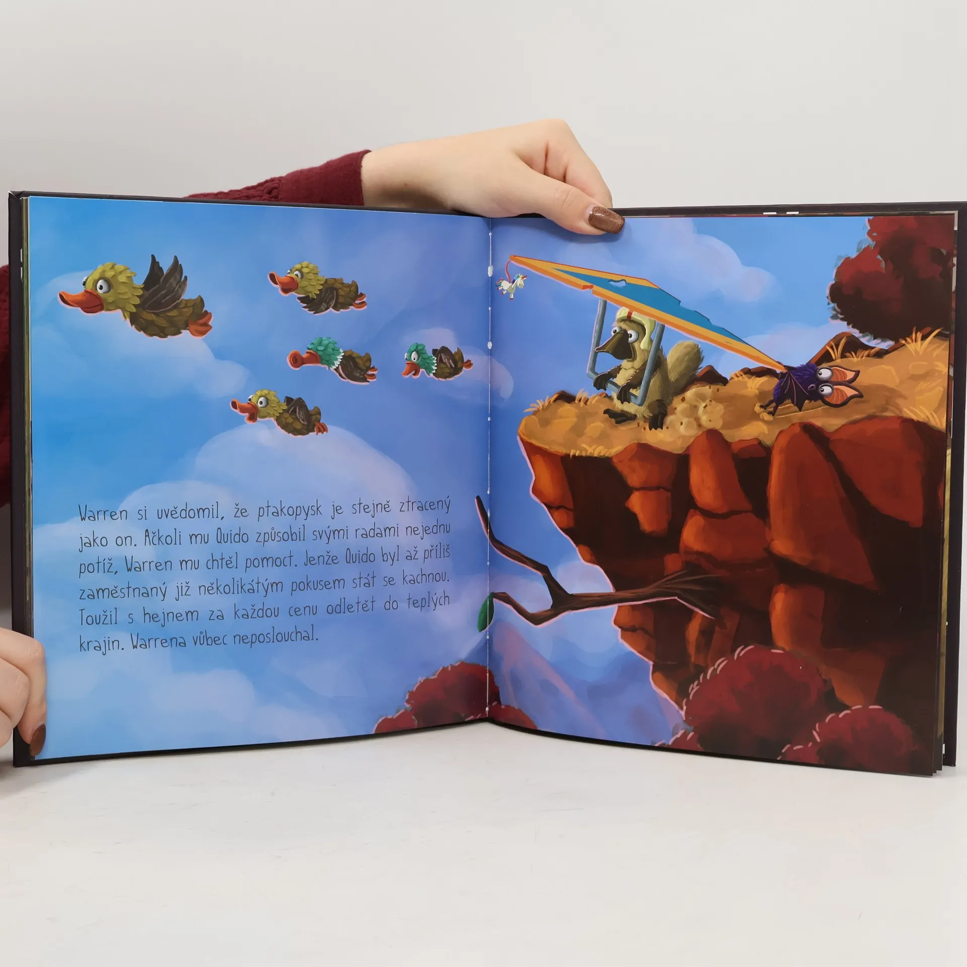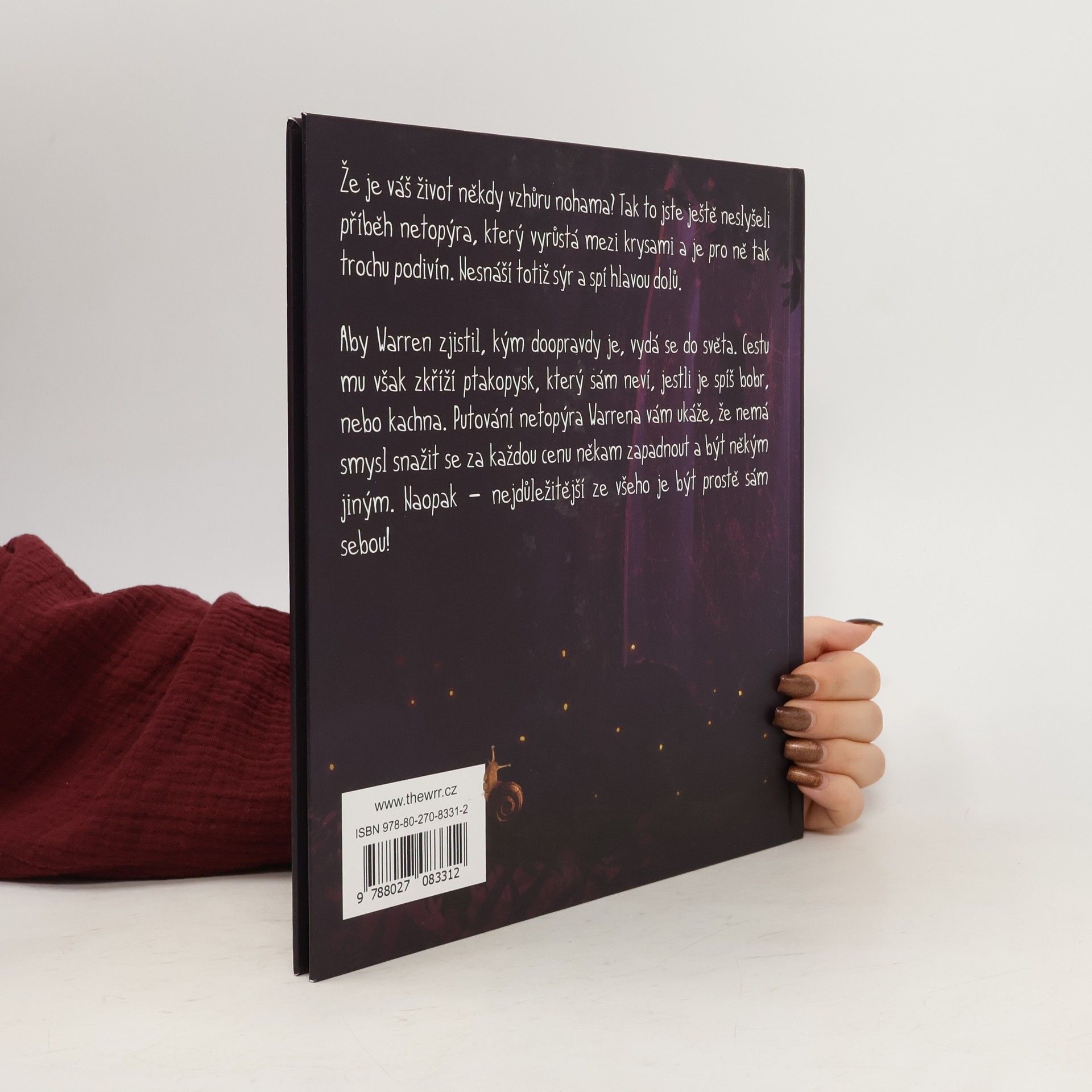 Že je váš život někdy vzhůru nohama? Tak to jste ještě neslyšeli příběh netopýra Warrena, který vyrůstá mezi krysami a je pro ně tak trochu podivín. Nesnáší totiž sýr a spí hlavou dolů. Aby Warren zjistil, kým doopravdy je, vydá se do světa. Cestu mu však zkříží ptakopysk, který sám neví, jestli je spíš bobr nebo kachna. Putování netopýra Warrena vám ukáže, že nemá smysl snažit se za každou cenu někam zapadnout a být někým jiným. Naopak – nejdůležitější ze všeho je být prostě SÁM SEBOU!