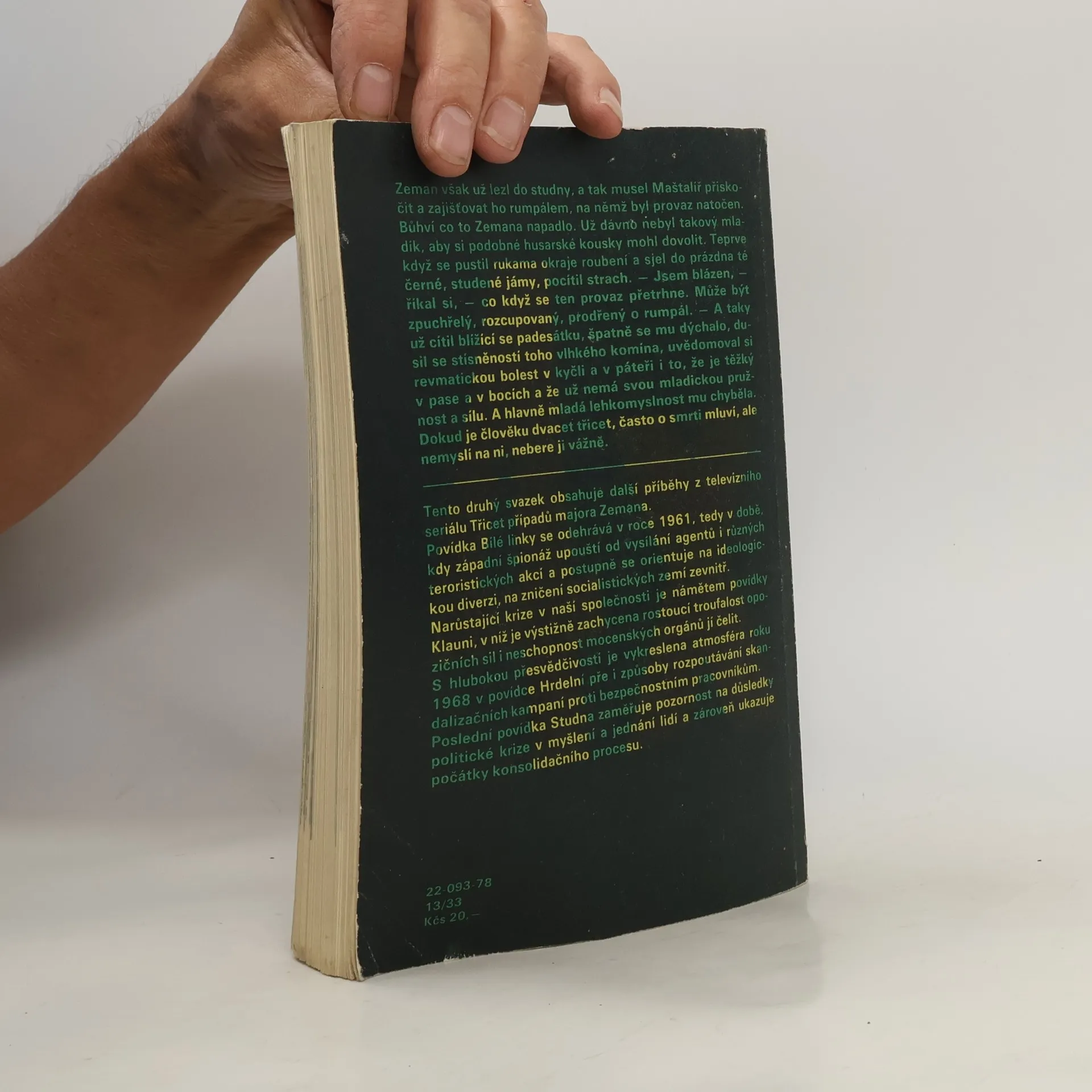 Další čtyři případy majora Zemana. Čtyři kriminální povídky se zaměřují na západní ideologickou diverzi z r. 1961 (Bílé linky), narůstající politickou krizi v naší společnosti v r. 1967 (Klauni), její vrcholení v r. 1968 (Hrdelní pře) a její důsledky v r.1969 (Studna).