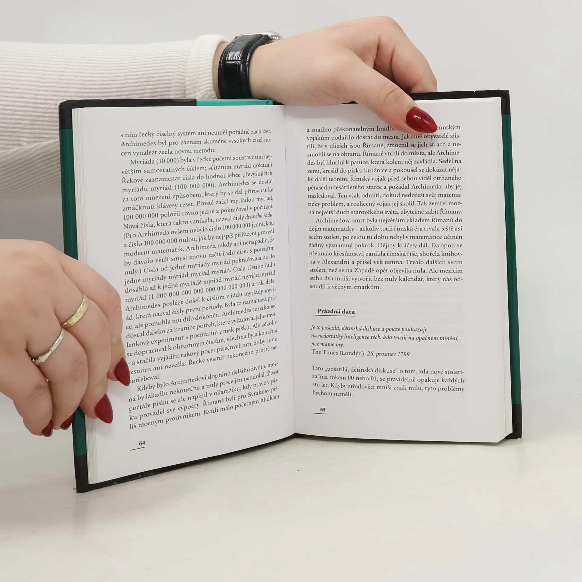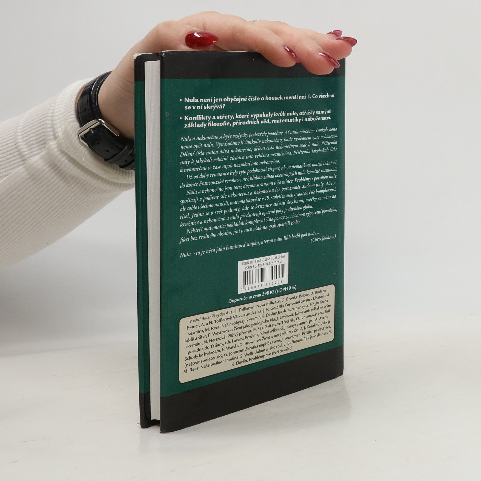 Životopis jedné nebezpečné myšlenky. Tato kniha je historií nuly. Zrodila se ve starověku a posléze se jí podařilo vybojovat si místo na slunci na Východě, s prosazením na Západě to však měla mnohem obtížnější. Možná proto se naší civilizaci dodnes mstí a neustále působí nové a nové potíže – od havárií řídících systémů až po fundamentální problémy v moderní fyzice. Stejně je však naše kniha i historií lidí, kteří po staletí s nulou bojovali a nakonec jí v nerovném boji podlehli učenců a mystiků, vědců a kněží, všech těch, kdo se nule snažili porozumět a ovládnout ji. Je to příběh marných, někdy i násilných pokusů západního světa ochránit se před vlivem východních myšlenek. A je to také historie paradoxů, které s sebou přináší nevinně vypadající číslo, paradoxů, které mátly i nejchytřejší mozky minulého století a hrozily narušit vlastní základy vědeckého myšlení. Nula nakonec vždy zvítězila nad těmi, kdo se jí stavěli na odpor. Lidé ji nikdy nedokázali přinutit, aby se přizpůsobila jejich filozofiím, to ona utvářela naše názory na vesmír i na samotného Boha.