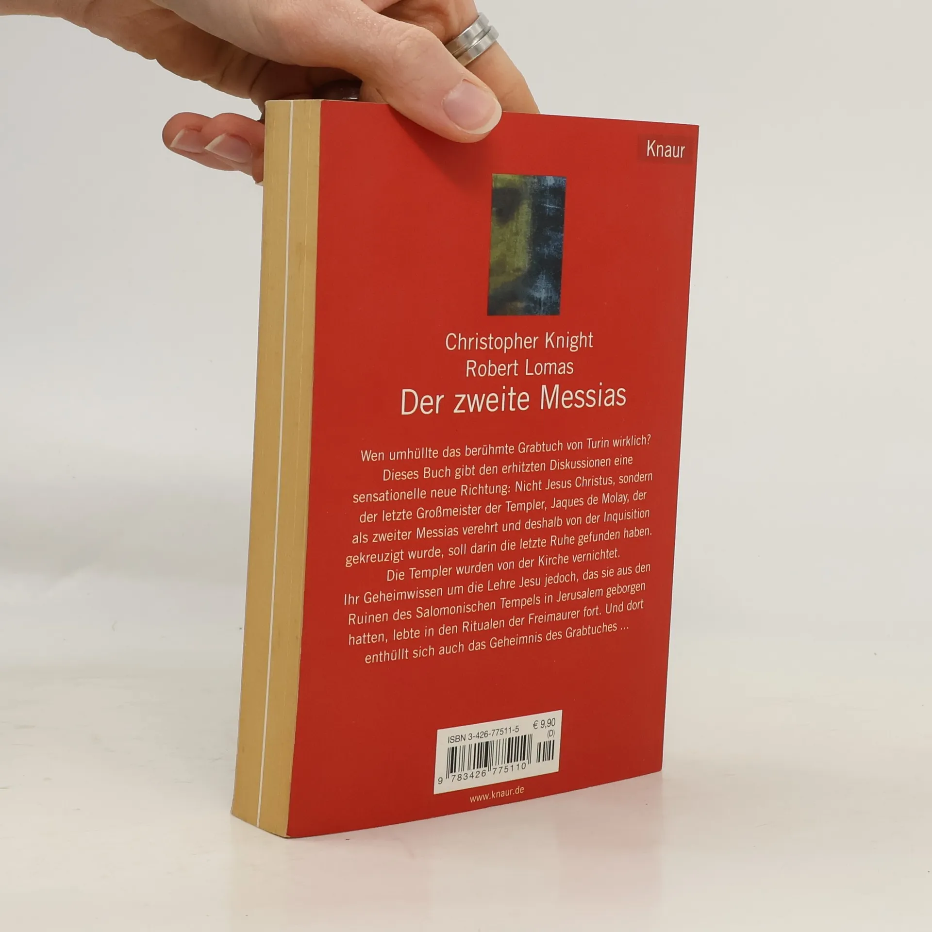 Wen umhüllte das berühmte Grabtuch von Turin wirklich? Dieses Buch gibt den erhitzten Diskussionen um das Grabtuch von Turin eine sensationelle neue Richtung. Die Analyse der Autoren zeigt, dass es nicht Jesus Christus, sondern den Körper des letzten Großmeisters der Templer umhüllte, der von der Inquisition gefoltert und gekreuzigt wurde. Knight und Lomas gewähren Einblicke in die Geschichte des Geheimordens der Templer, in die Ursprünge und Rituale der Freimaurer und das Leben des „zweiten Messias“. Ein fesselnder Mix aus unglaublichen Enthüllungen, wissenschaftlichen Thesen und mystischen Gedankenspielen. Aufregend, spektakulär und herausfordernd