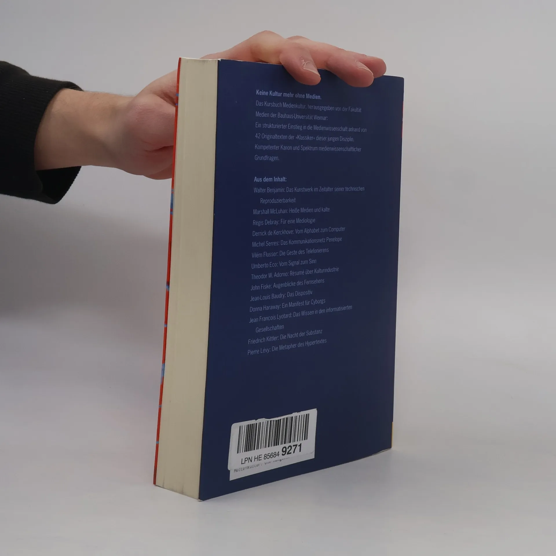 Das in Zusammenarbeit mit der Fakultät für Medien der Bauhaus-Universität Weimar herausgegebene Buch fasst die wichtigsten Positionen zur Medienkultur unseres Jahrhunderts in Originaltexten zusammen. Es wendet sich gleichermaßen an Studenten wie Dozenten der Medien- und Kulturwissenschaften und gibt ihnen - übersichtlich geordnet und kommentiert - eine strukturierte Einführung in die Medientheorie an die Hand. Viele Texte werden hier erstmals oder seit langer Zeit wieder auf Deutsch zugänglich gemacht.