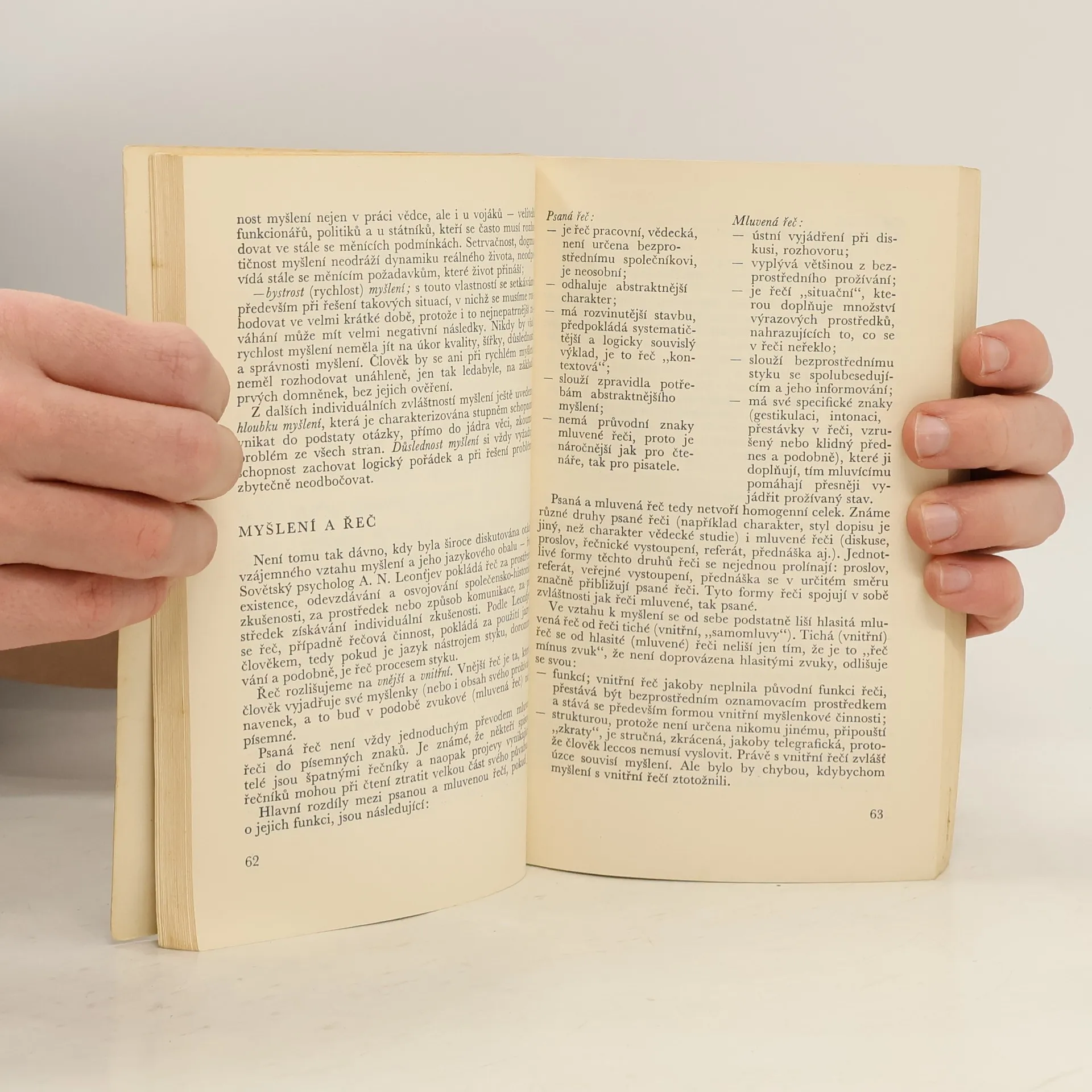 česky- 1.vydání V úvodu se autor věnuje jednotlivým směrům v psychologii a metodám psychologie. Jsou podrobně vysvětleny pojmy: pocity, vnímání, představy, fantazie, myšlení, řeč, pozornost. Následuje psychologie osobnosti: charakter, temperament. v závěru se autor věnuje problémům při jednotlivých činostech člověka, psychologií práce, únavou a jak proti ní bojovat.