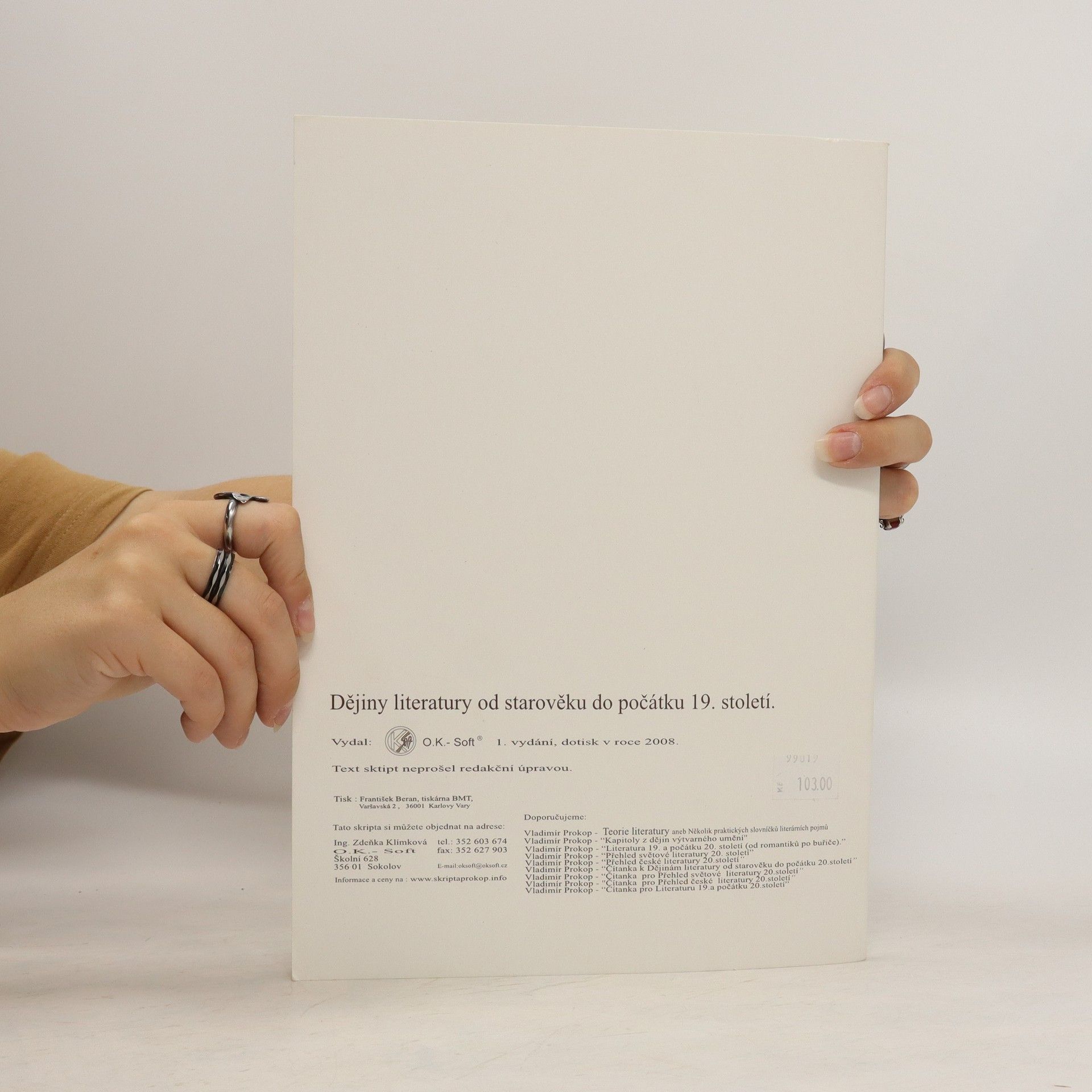 Dějiny literatury od starověku do počátku 19. století, Vladimír Prokop