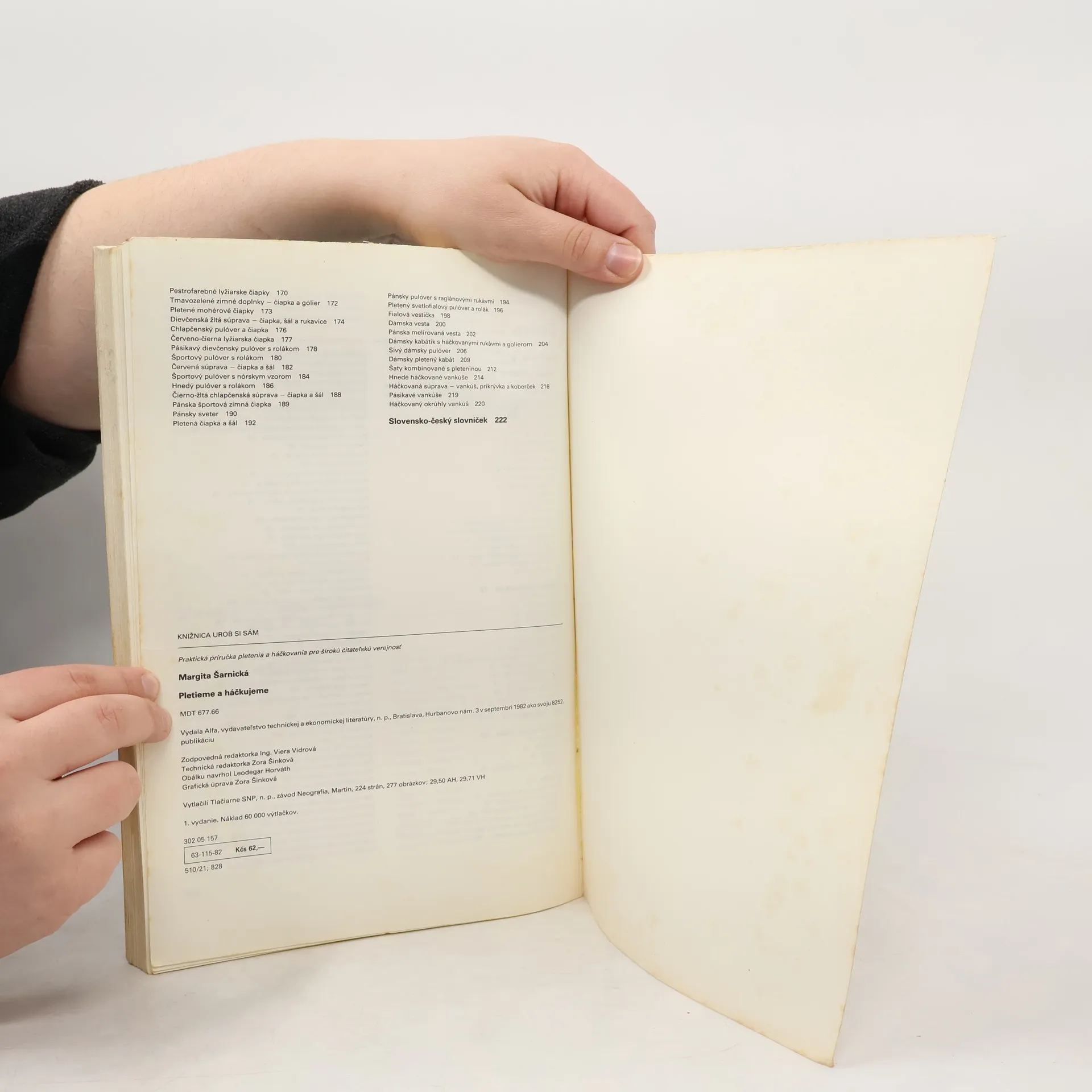 Praktická príručka obsahuje návody na pletené a háčkované odevy pre deti a dospelých, ako aj na bytové doplnky, celkom 118 modelov alebo doplnkov s postupom vyhotovenia.