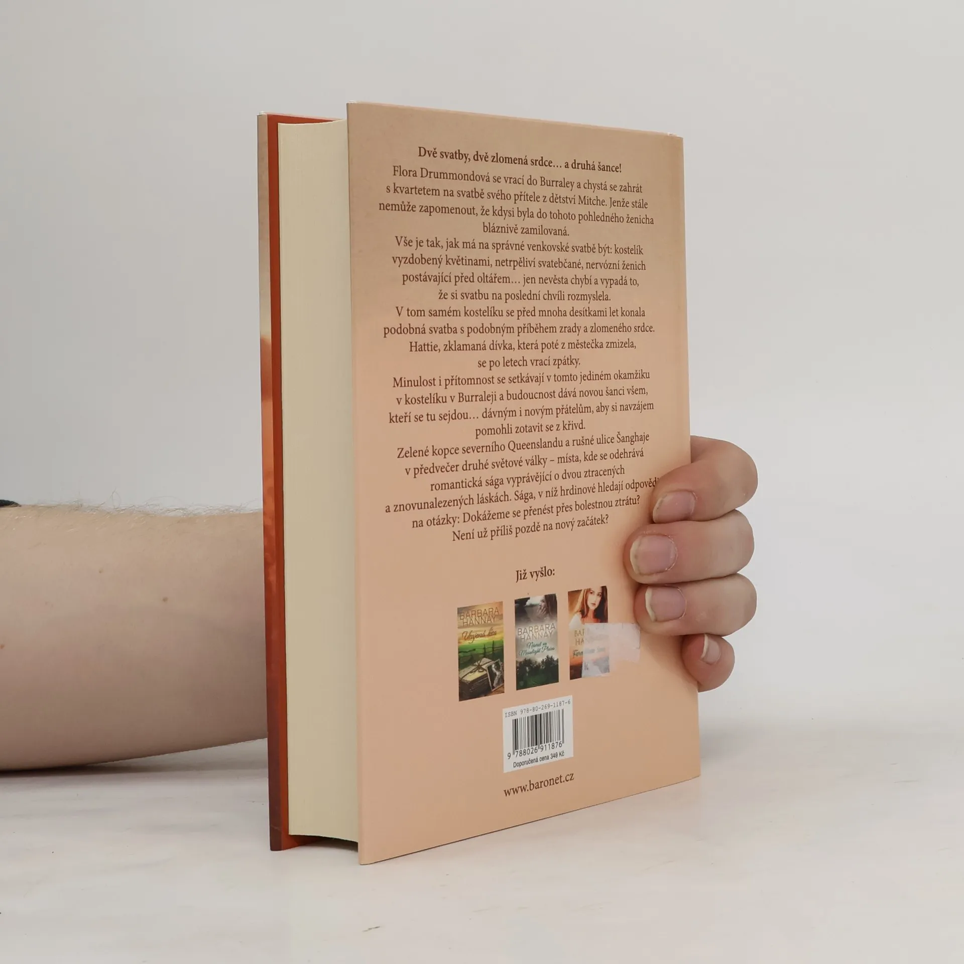 Dvě svatby, dvě zlomená srdce… a druhá šance! Flora Drummondová se vrací do Burraley, aby zahrála s kvartetem na svatbě svého nejlepšího přítele z dětství Mitche. Jenže stále nemůže zapomenout, že kdysi byla do tohoto pohledného ženicha bláznivě zamilovaná. Vše je tak, jak má na správné venkovské svatbě být: kostelík vyzdobený květinami, netrpěliví svatebčané, nervózní ženich postávající před oltářem… jen nevěsta chybí a vypadá to, že si svatbu na poslední chvíli rozmyslela. V tom samém kostelíku se před padesáti lety konala podobná svatba s podobným příběhem zrady a zlomeného srdce. Hattie, nevěsta, která tenkrát zmizela, se po letech vrací zpátky na místo činu. Minulost i přítomnost se setkávají v tomto jediném okamžiku v kostelíku v Burralee a budoucnost dává novou šanci všem, kteří se tu sejdou… dávným i novým přátelům, aby si navzájem pomohli zotavit se z křivd. Zelené kopce severního Queenslandu a rušné ulice Šanghaje v předvečer druhé světové války – místa, kde se odehrává romantická sága vyprávějící o dvou ztracených a znovunalezených láskách. Sága, v níž hrdinové hledají odpovědi na otázky: Dokážeme se přenést přes bolestnou ztrátu? Není už příliš pozdě na nový začátek?