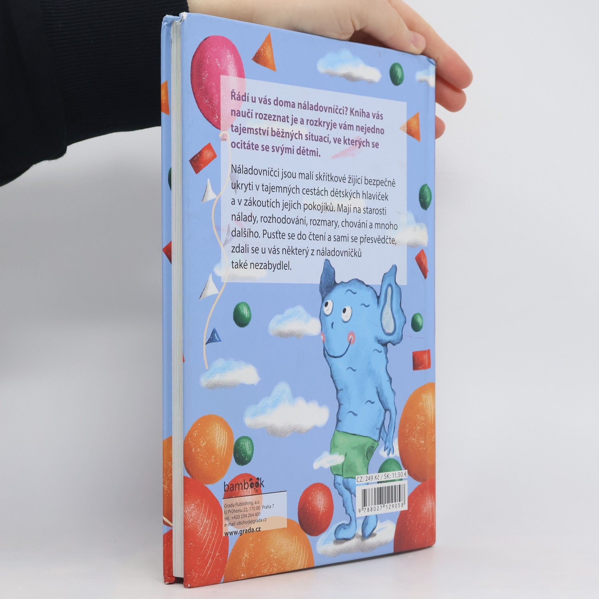 Řádí u vás doma náladovníčci? Kniha vás naučí rozeznat je a rozkryje vám nejedno tajemství běžných situací, ve kterých se ocitáte se svými dětmi. Náladovníčci jsou malí skřítkové žijící bezpečně ukryti v tajemných cestách dětských hlaviček a v zákoutích jejich pokojíků. Mají na starosti nálady, rozhodování, rozmary, chování a mnoho dalšího. Pusťte se do čtení a sami se přesvědčte, zdali se u vás některý z náladovníčků také nezabydlel. Věnování Obrázkomil pastelkový Obrázkomil pastelkový zasahuje Legohrátek sbíravý Legohrátek sbíravý se pustil do práce Knihánek prohlíživý Knihánek prohlíživý je ve svém živlu Listovníček dobrodružný Listovníček dobrodružný prolistoval celý den Pohádkomil čtivý Pohádkomil čtivý v krajině snů Fantazníček vymýšlivý Fantazníček vymýšlivý má napilno Mrzutec