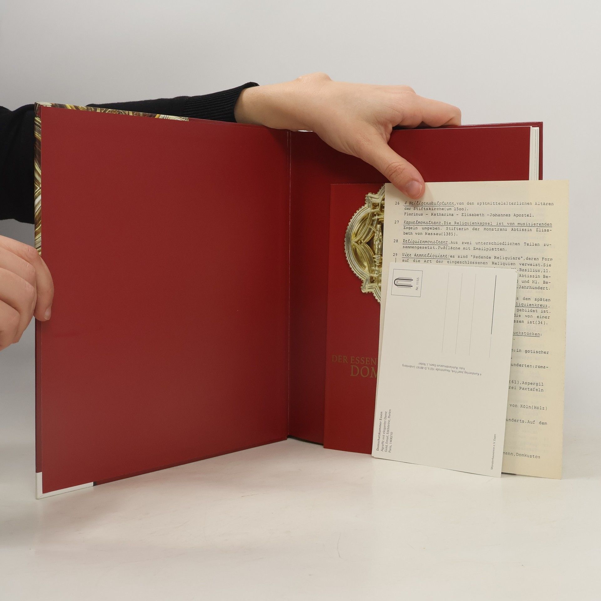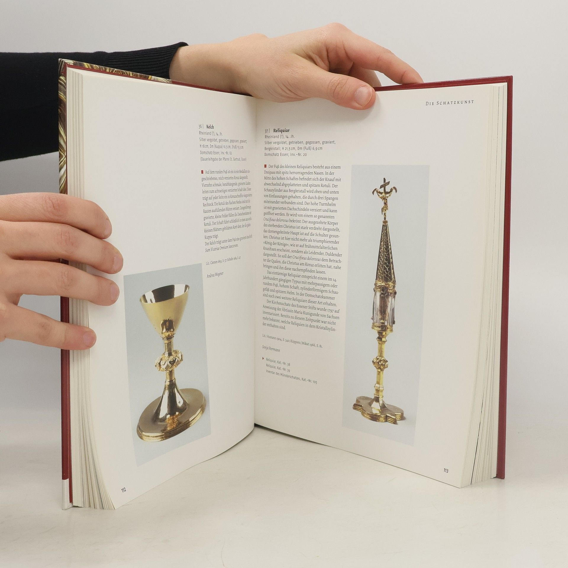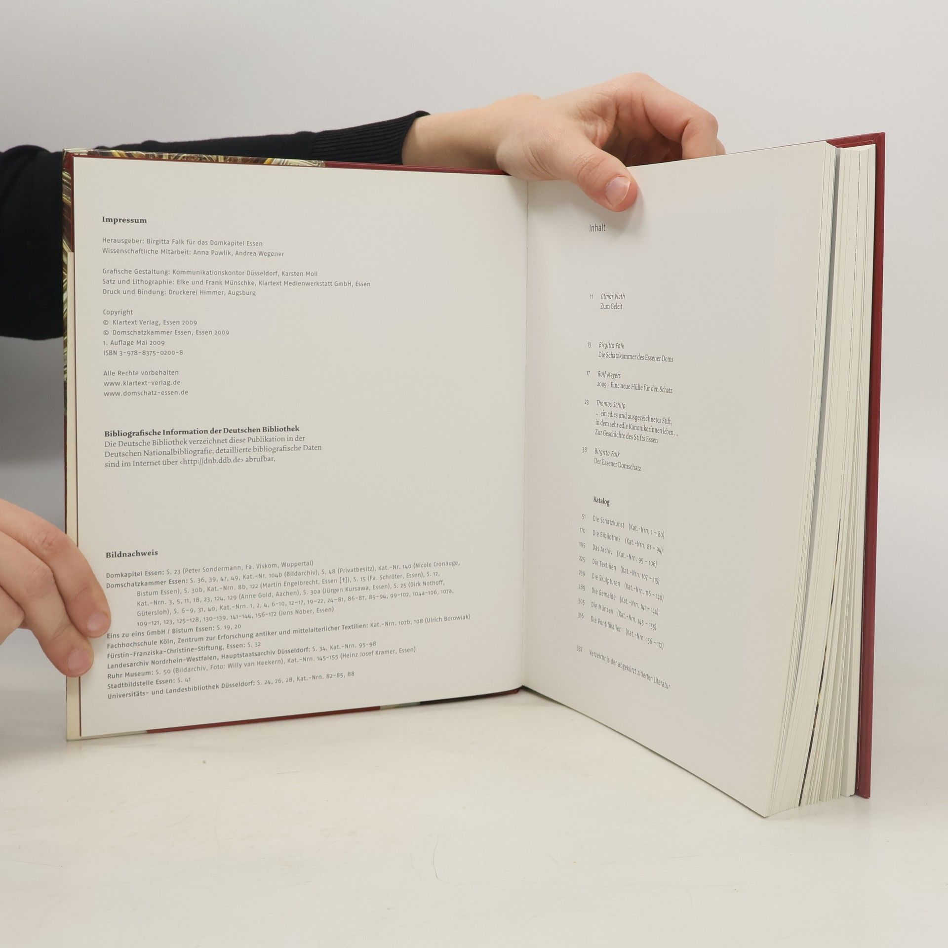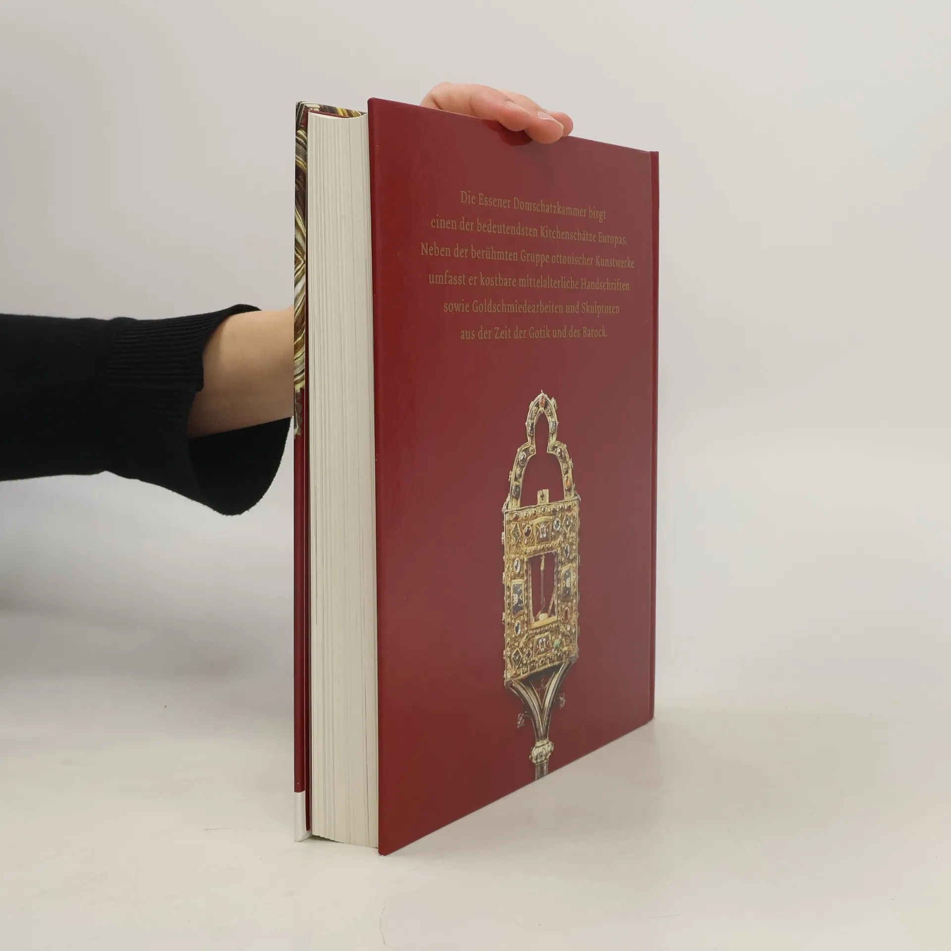Die Essener Domschatzkammer birgt einen der bedeutendsten Kirchenschätze Europas. Neben der berühmten Gruppe ottonischer Kunstwerke umfasst er kostbare mittelalterliche Handschriften sowie Goldschmiedearbeiten und Skulpturen aus der Zeit der Gotik und des Barock. Der Schatz erwuchs aus dem Leben des Essener Frauenstiftes, das um 850 gegründet wurde. Aus der, um das Stift gelegenen Siedlung entwickelte sich im Laufe des Mittelalters die Stadt Essen. Die ehemalige Stifstkirche, das Essener Münster, ist heute die Domkirche des Bistums Essen. Im Dom steht das bedeutendste Kunstwerk des Ruhrgebiets: Die goldene Madonna. Der Katalog zur Ausstellung im Ruhrmuseum ist ein wichtiger Schritt auf dem Weg zu einem detaillierten wissenschaftlichen Bestandskatalog, wie er zuletzt 1904 von Georg Humann vorgelegt wurde. Wie in die Neukonzeption der Dauerausstellung sind auch in den Katalog die Forschungsergebnisse der letzten Jahre eingeflossen. und die Schatzstücke wurden nicht als isolierte Kunstwerke beschrieben, sondern in den Kontext der Geschichte und Liturgie des Frauenstiftes und der Stadt Essen eingebunden. Der Katalog stellt alle zum Schatz gehörenden Objekte vor. Aus den Archivalien, Handschriften und Münzen wurde eine für die Geschichte des Schatzes repräsentative Auswahl getroffen. Das Katalogbuch macht es möglich, die vielfältigen Beziehungen der Stücke untereinander zu verdeutlichen.