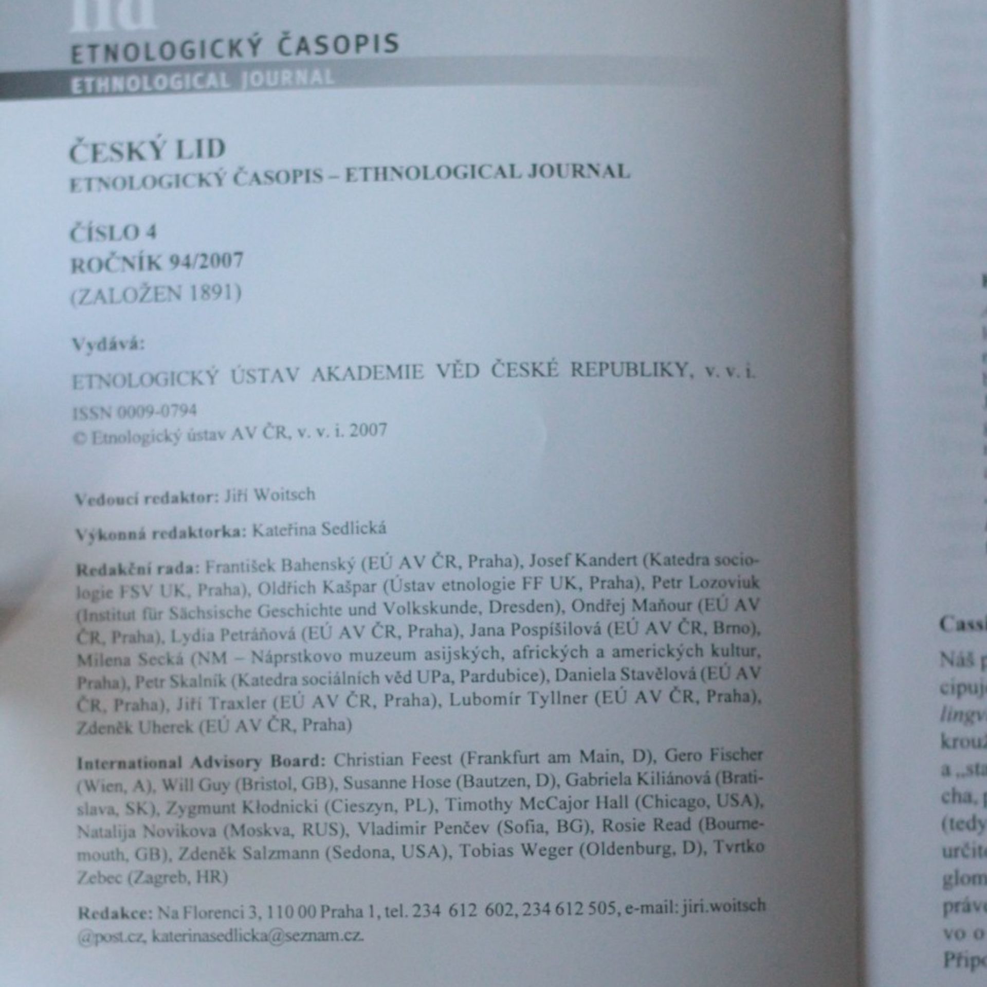 Etnologický časopis 4; r. 94, Kolektív autorov