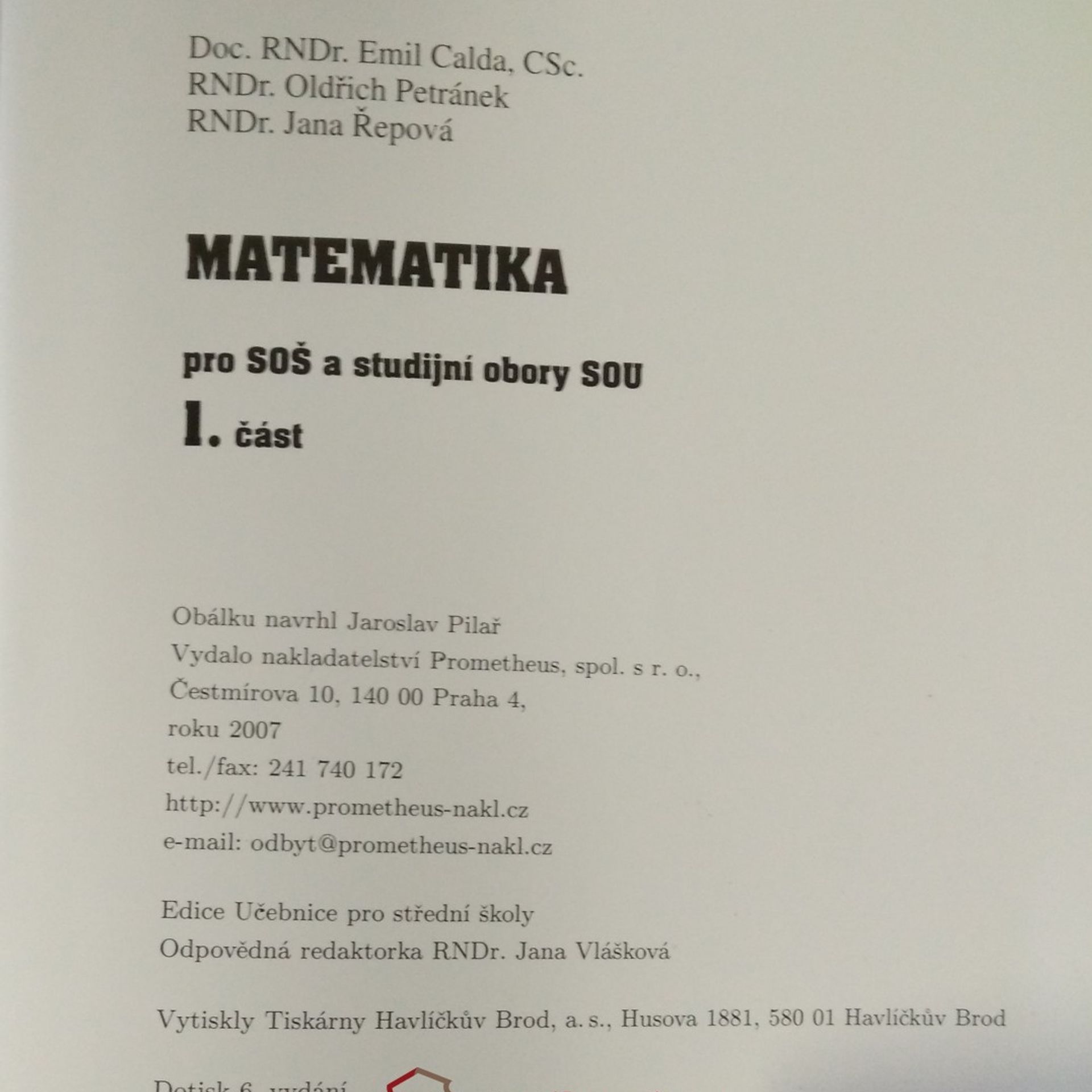 Matematika pro střední odborné školy a studijní obory středních odborných učilišť 1. část, Kolektív autorov