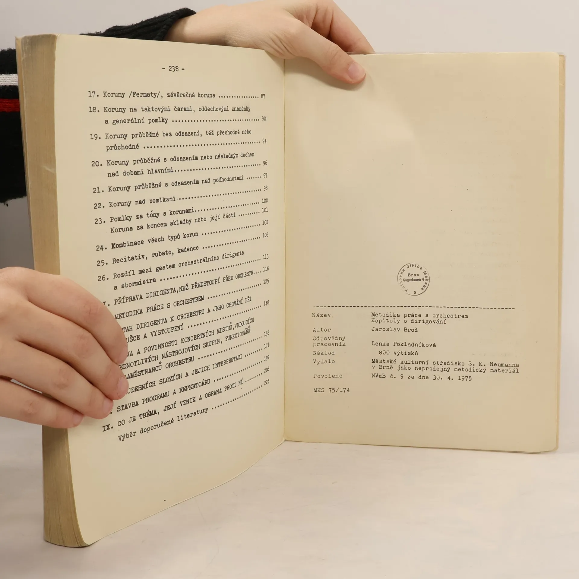 Metodika práce s orchestrem, kapitoly o dirigování, Jaroslav Brož