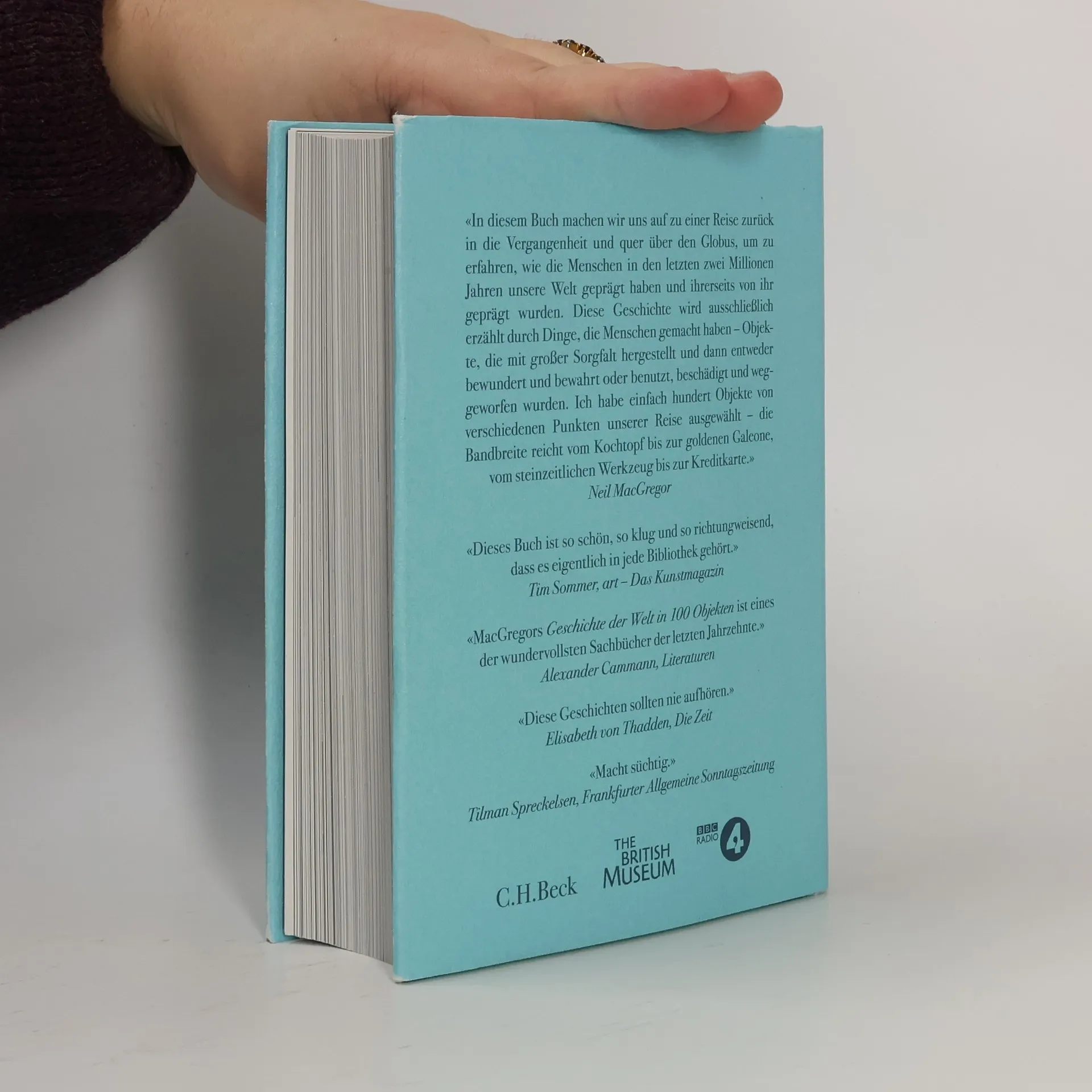 Was uns eine steinerne Säule über einen großen indischen Herrscher erzählen kann, der seinem Volk Toleranz predigt, was spanische Dukaten uns über die Anfänge der globalen Währung verraten, oder was ein viktorianisches Teeservice uns über die Macht des Britischen Empires offenbart - Neil MacGregor beschreibt all diese Objekte nicht einfach nur, sondern erschließt uns durch ihre Betrachtung immer auch ein Stück Weltgeschichte. Wer den hier versammelten Dingen - vom afrikanischen Faustkeil bis zur Solarlampe Made in China - auf diese Weise begegnet, sieht die Geschichte als ein großes Kaleidoskop - kreisend, vielfältig verbunden, unentwegt voller Überraschungen. Ein intellektuelles und ästhetisches Vergnügen von der ersten bis zur letzten Seite und eines der außergewöhnlichsten historischen Bücher der letzten Jahre.