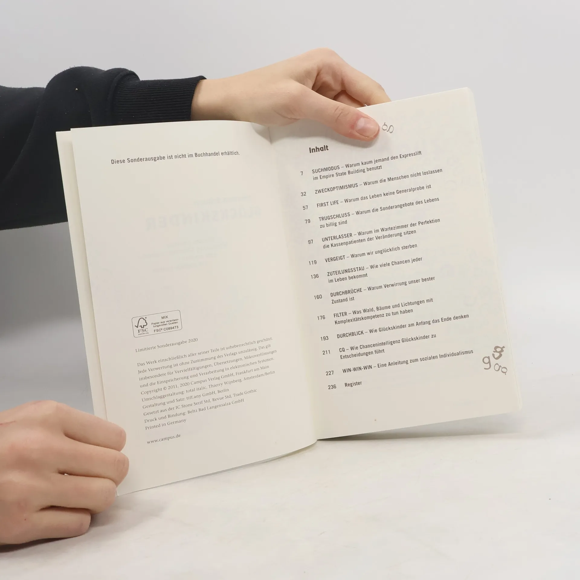Der Fisch springt nicht an den Haken und das Reh läuft nicht vor die Flinte. Genauso will auch die Chance gejagt sein. Glückskinder wissen das. Statt darauf zu warten, dass ihnen alles Gute einfach in den Schoß fällt, setzen sie ihre Chancenintelligenz ein: die Fähigkeit, Chancen zu erkennen und zu nutzen – und zwar die richtigen! Klingt banal? Warum sind wir dann nicht längst alle Glückskinder? Hermann Scherer erzählt viele Geschichten von Menschen, die Chancen in scheinbar unbedeutenden oder gar ausweglosen Situationen gesehen und ergriffen haben. Zum Beispiel von Stefan Raab, der es vom Metzgerei-Lehrling zum medialen Multitalent gebracht hat. Oder von Cliff Young, der im Alter von 61 Jahren den 875 km langen Ultra-Marathon in Overall und Gummistiefeln lief und gewann. Und Scherer macht klar, was man über Chancen wissen muss: Sie liegen nie in der Zukunft, sie pfeifen auf Regeln und sie sind so alltäglich wie das Leben! „Die Sorte Glück, die ich meine, wenn ich von Glückskindern spreche, ist der Zustand des Glücklichseins, der nicht durch einen zufälligen Glückstreffer hervorgerufen wird, sondern durch eine Art zu leben, die einem ermöglicht, dauerhaft Chancen zu entdecken und zu nutzen. Um diese Glückskinder und ihren besonderen Chancenblick geht es in diesem Buch.“ Hermann Scherer