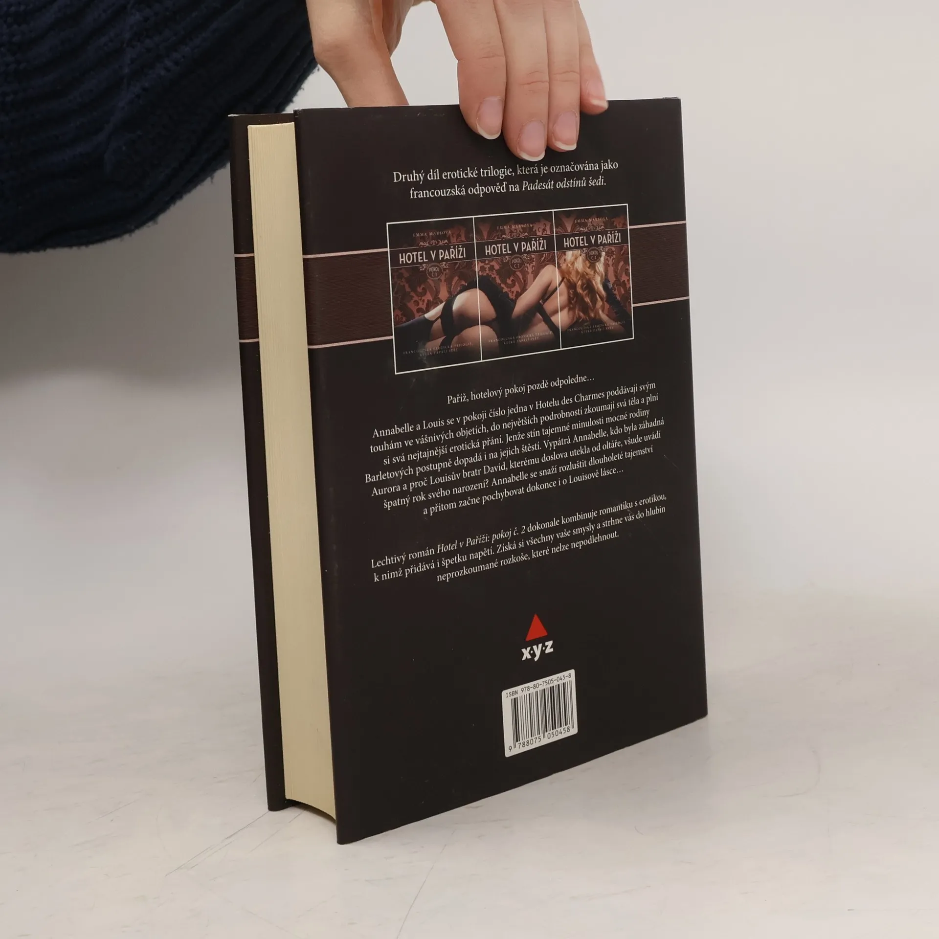 Paříž, hotelový pokoj pozdě odpoledne… Annabelle a Louis se v pokoji číslo jedna v Hotelu des Charmes poddávají svým touhám ve vášnivých objetích, do největších podrobností zkoumají svá těla a plní si svá nejtajnější erotická přání. Jenže stín tajemné minulosti mocné rodiny Barletových postupně dopadá i na i jejich štěstí... Druhý díl erotické trilogie, která je považována za francouzskou odpověď na Fifty Shades of Grey.