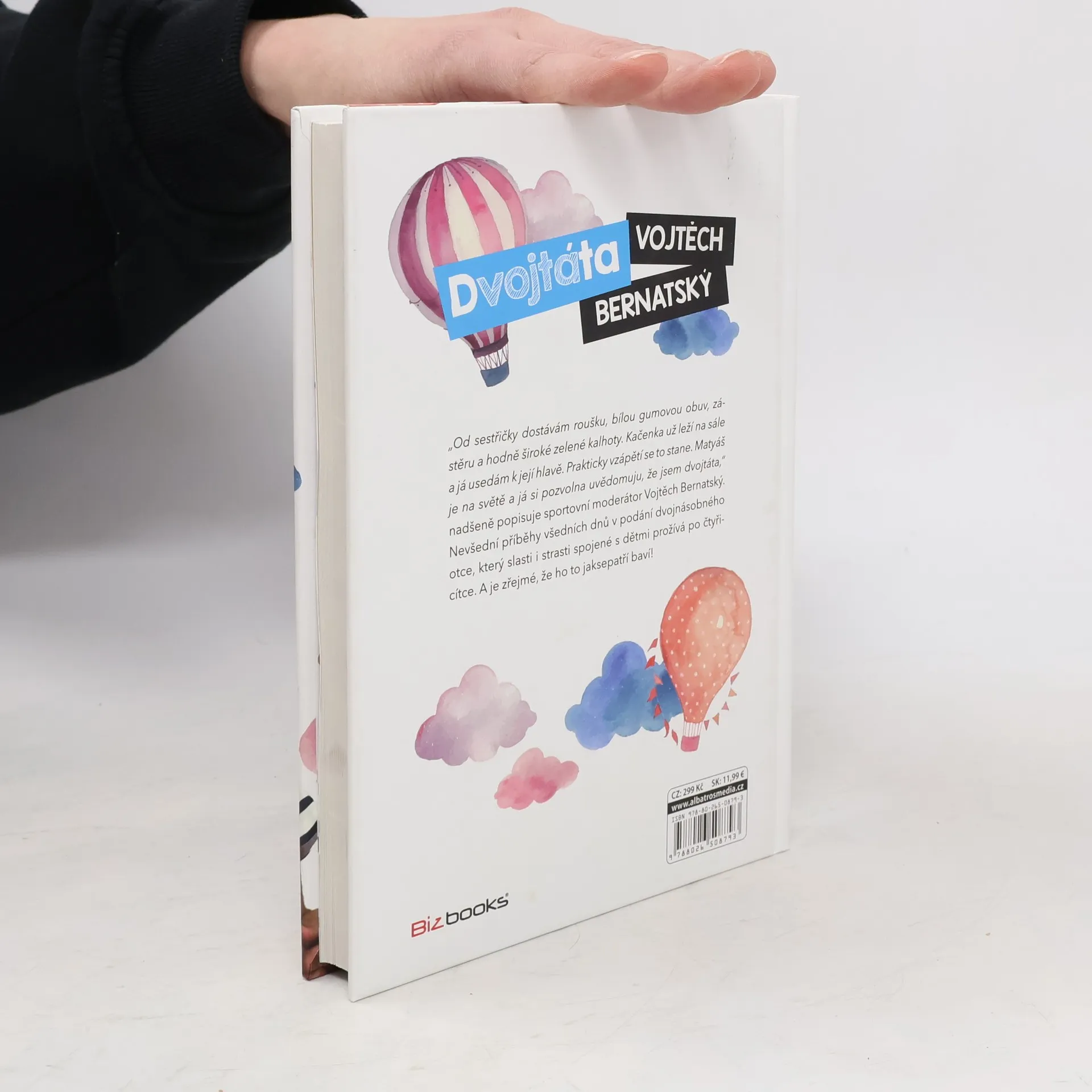 Tátou po čtyřicítce? Pro známého českého moderátora žádný problém. Tedy skoro žádný. „Od sestřičky dostávám roušku, bílou gumovou obuv, zástěru a hodně široké zelené kalhoty. Kačenka už leží na sále a já usedám k její hlavě. Prakticky vzápětí se to stane. Matyáš je na světě a já si pozvolna uvědomuju, že jsem dvojtáta,“ nadšeně popisuje sportovní moderátor Vojtěch Bernatský. Nevšední příběhy všedních dnů v podání dvojnásobného otce, který slasti i strasti spojené s dětmi prožívá po čtyřicítce. A je zřejmé, že ho to jaksepatří baví!