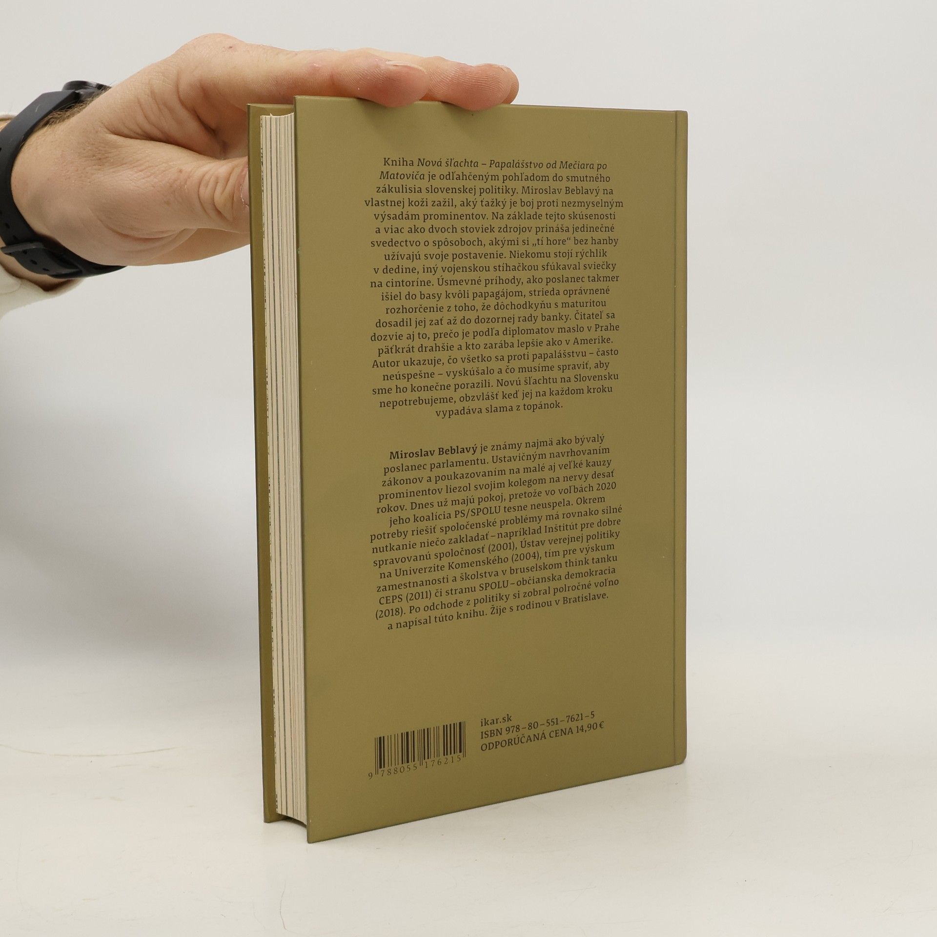 Kniha Nová šľachta – Papalášstvo od Mečiara po Matoviča je odľahčeným pohľadom do smutného zákulisia slovenskej politiky. Miroslav Beblavý na vlastnej koži zažil, aký ťažký je boj proti nezmyselným výsadám prominentov. Na základe tejto skúsenosti a viac ako dvoch stoviek zdrojov prináša jedinečné svedectvo o spôsoboch, akými si „tí hore“ bez hanby užívajú svoje postavenie. Niekomu stojí rýchlik v dedine, iný vojenskou stíhačkou sfúkaval sviečky na cintoríne. Úsmevné príhody, ako poslanec takmer išiel do basy kvôli papagájom, strieda oprávnené rozhorčenie z toho, že dôchodkyňu s maturitou dosadil jej zať až do dozornej rady banky. Čitateľ sa dozvie aj to, prečo je podľa diplomatov maslo v Prahe päťkrát drahšie a kto zarába lepšie ako v Amerike. Autor ukazuje, čo všetko sa proti papalášstvu – často neúspešne – vyskúšalo a čo musíme spraviť, aby sme ho konečne porazili. Novú šľachtu na Slovensku nepotrebujeme, obzvlášť keď jej na každom kroku vypadáva slama z topánok.