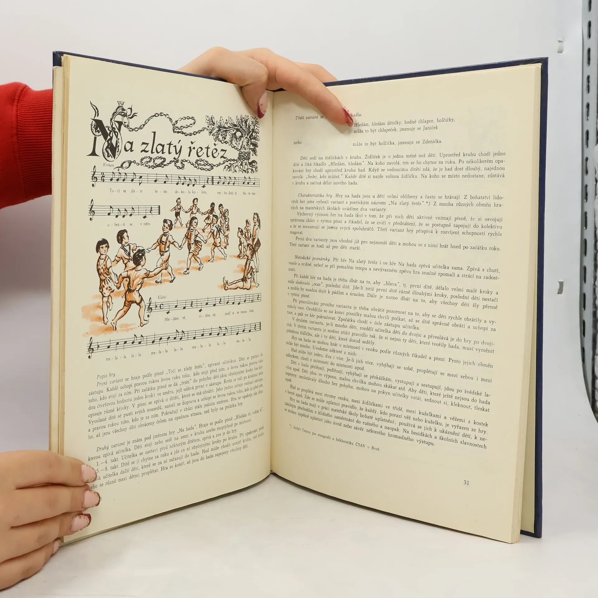 Metodická příručka k nácviku lidových her se zpěvem pro děti předškolního věku, doplněná notovými záznamy klavírních doprovodů k jednotlivým hrám.