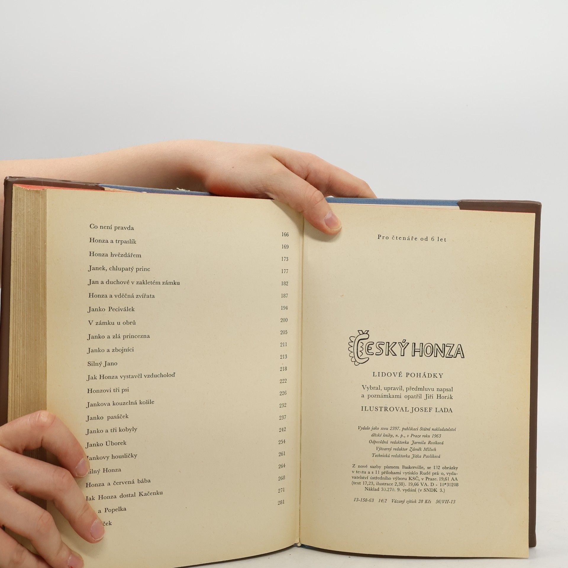 Sebrané pohádky o Honzovi (celkem 67 pohádek) – silném, jako princ, rytíř, nesyta a různé sestavil Jiří Horák a ilustroval Josef Lada. Tato knížka je plná pohádek, ve kterých je hlavní hrdinou Honza. V některých příbězích je sice hloupý, ale nakonec dostane nejkrásnější princeznu, vjiných zas přemůže sedmihlavého draka nebo svou chytrostí vyhraje válku. Nejvíce se mi líbila pohádka, ve které byl hlavní hrdinou líný Honza, který doma všechno snědl a tak mu jeho matka poradila, ať jde štěstí zkusit do světa. Všude ho vyhodili, až jednou narazil na stavení, ve kterém bydlel mazaný sedlák. Tak si ho tam nechali za pacholka. Druhý den měl jít do lesa naštípat otýpky, chtěl si s sebou vzít veliký krajíc chleba, ale sedlák mu dal malý a řekl mu, ať si ho dá do studánky, že se chleba zvětší. A tak milej Honza šel. Cestou snědl všechen chleba a žádnou otýpku nenasekal. Teprve k večeru nasekal jednu otýpku a dal ji do studánky, aby se zvětšila. Pozdě večer se vracel z lesa a sedlák ho netrpělivě vítal, a měl radost, že když byl v lese tak dlouho, že má jistě hodně otýpek. A Honza mu odpověděl stejně jako on před tím: ´Nasekal jsem jednu a dal jsem ji do studánky, aby se zvětšila. Ještě leží támhle na dvoře. (9. vydání, v SNDK 3. vydání)