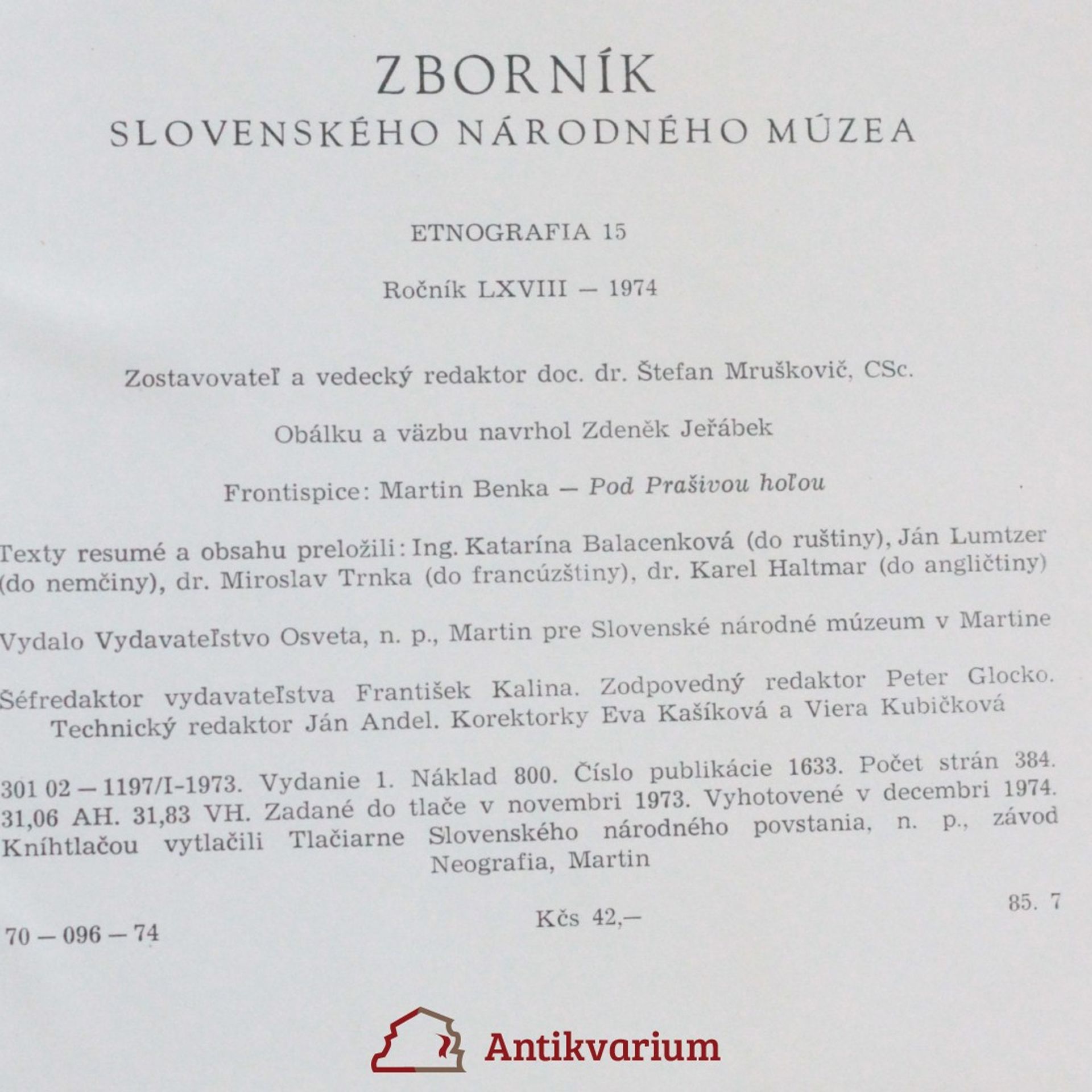 Sborník slovenského národného múzea, Kolektív autorov