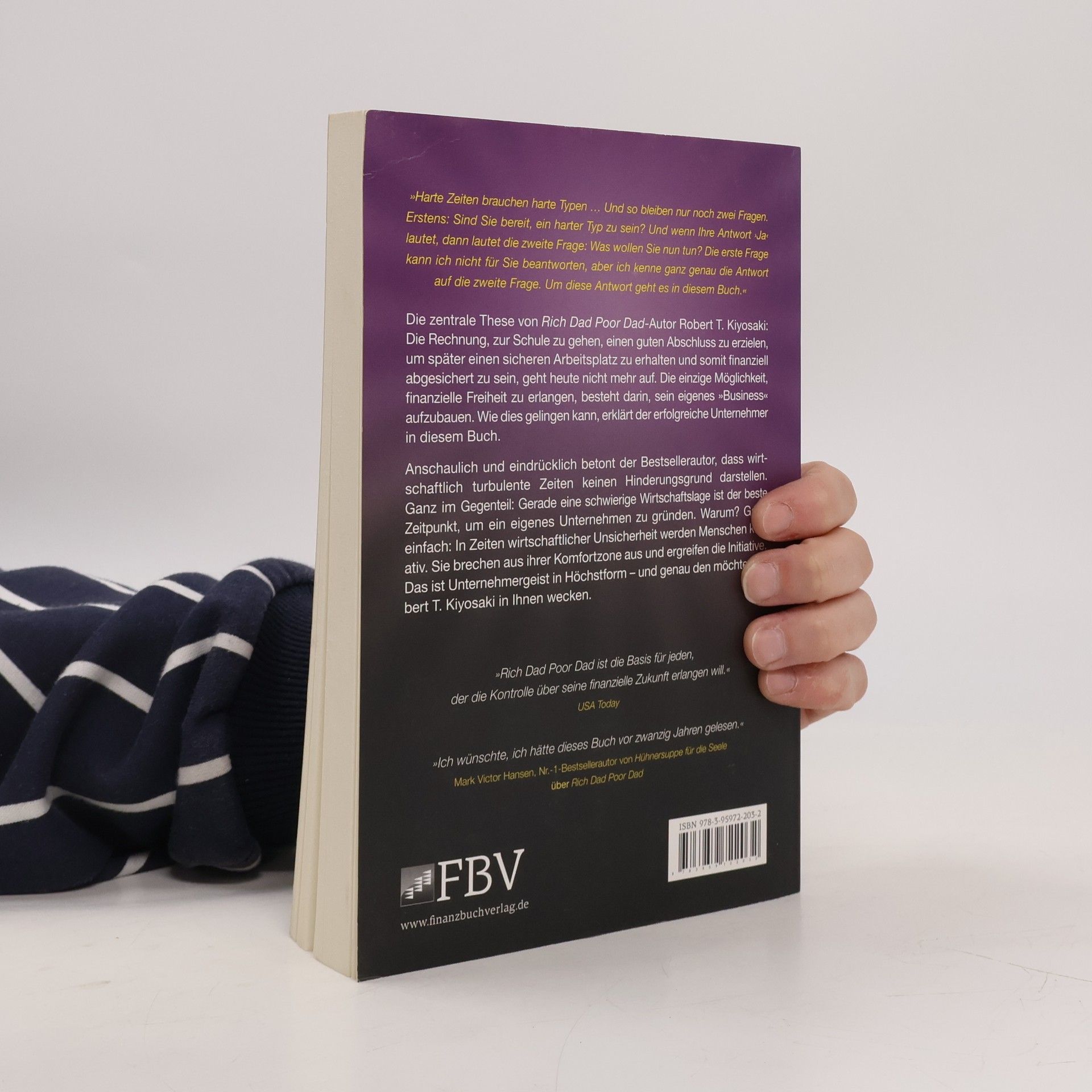 Die zentrale These von Rich Dad Poor Dad-Autor Robert T. Kiyosaki lautet: Die Rechnung, zur Schule zu gehen, einen guten Abschluss zu erzielen, um später einen sicheren Arbeitsplatz zu erhalten und somit finanziell abgesichert zu sein, geht heute nicht mehr auf. Die einzige Möglichkeit, finanzielle Freiheit zu erlangen, besteht darin, sein eigenes Geschäft aufzubauen. Wie dies gelingen kann, erklärt der erfolgreiche Unternehmer in diesem Buch. Anschaulich und eindrücklich betont der Bestsellerautor, dass wirtschaftlich turbulente Zeiten keinen Hinderungsgrund darstellen. Ganz im Gegenteil: Gerade eine schwierige Wirtschaftslage ist der beste Zeitpunkt, um ein eigenes Unternehmen zu gründen. Warum? Ganz einfach: In Zeiten wirtschaftlicher Unsicherheit werden Menschen kreativ. Sie brechen aus ihrer Komfortzone aus und ergreifen die Initiative. Das ist Unternehmergeist in Höchstform – und genau den möchte Robert T. Kiysosaki in Ihnen wecken. „Harte Zeiten brauchen harte Typen … Und so bleiben nur noch zwei Fragen. Erstens: Sind Sie bereit, ein harter Typ zu sein? Und wenn Ihre Antwort »Ja« lautet, dann lautet die zweite Frage: Was wollen Sie nun tun? Die erste Frage kann ich nicht für Sie beantworten, aber ich kenne ganz genau die Antwort auf die zweite Frage. Um diese Antwort geht es in diesem Buch.“ Robert T. Kiyosaki