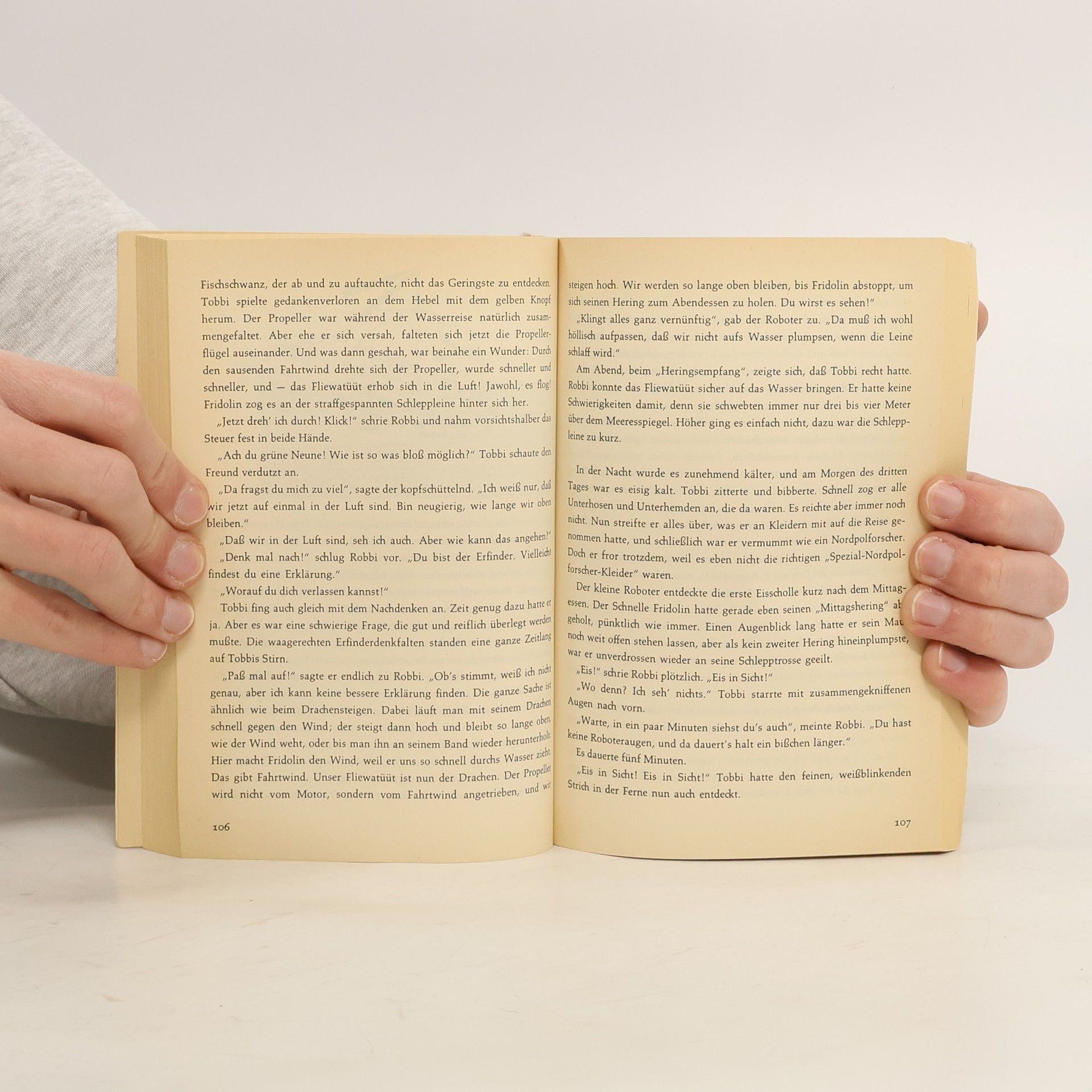 1:28 Uhr, Tütermoor. Die Propeller drehen sich immer schneller - und endlich hebt das Fliewatüüt ab. „Vollgas!“, rufen die beiden Piloten Robbi und Tobbi. Denn die Roboterprüfungsaufgaben lösen sich nicht von alleine. Im Schließlich müssen sie nach Schottland fliegen und das Geheimnis einer dreieckigen Burg lüften oder auch im offenen Meer zwischen vielen bunten einen gelb-schwarz geringelten Leuchtturm finden. Boy Lornsens Klassiker in neuer Ausstattung - mit vielen farbigen Bildern von Günther Jakobs.