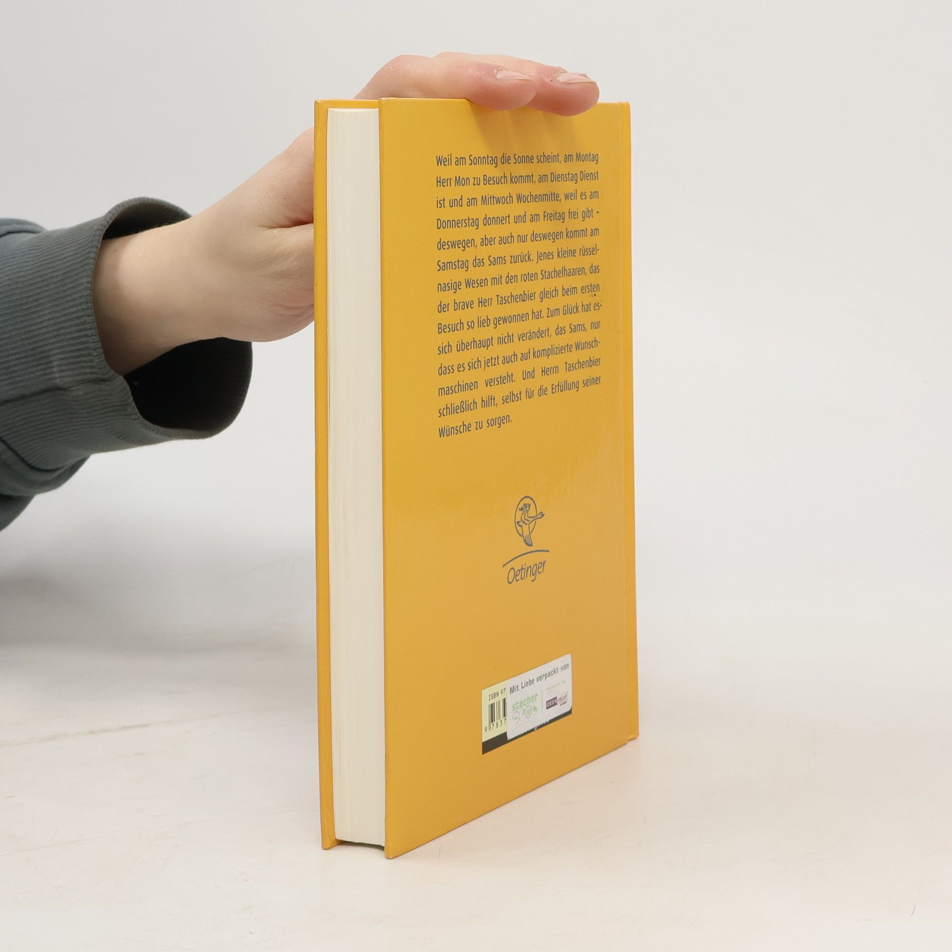 Am Sonntag scheint die Sonne, am Montag kommt Herr Mon zu Besuch, am Dienstag ist Dienst, und am Mittwoch ist Wochenmitte. Am Donnerstag donnert es, und am Freitag gibt es frei. Nur deshalb kehrt am Samstag das Sams zurück, das kleine rüsselnasige Wesen mit den roten Stachelhaaren, das der brave Herr Taschenbier beim ersten Besuch sofort ins Herz geschlossen hat. Glücklicherweise hat das Sams sich nicht verändert, es versteht sich jetzt jedoch auch auf komplizierte Wunschmaschinen und hilft Herrn Taschenbier, seine eigenen Wünsche zu erfüllen. Die humorvollen Kinderbücher rund um das liebenswerte Sams sind Klassiker der deutschen Kinderliteratur, ideal zum Vorlesen und Selbstlesen für Kinder ab 7 Jahren. Das freche Wesen lehrt Herrn Taschenbier, sein Leben selbstbewusst und unabhängig zu leben, egal was andere denken. Der zweite Band der Reihe wird bis heute fortgeschrieben. Die Sams-Reihe ist sowohl mit den Original-Illustrationen von Paul Maar als auch modern interpretiert von Nina Dulleck erhältlich. Die Bände umfassen: Eine Woche voller Samstage, Am Samstag kam das Sams zurück, Neue Punkte für das Sams, Ein Sams für Martin Taschenbier, Sams in Gefahr, Onkel Alwin und das Sams, Sams im Glück, Ein Sams zu viel, Das Sams feiert Weihnachten, Das Sams und der blaue Drache sowie Das Sams und die große Weihnachtssuche.